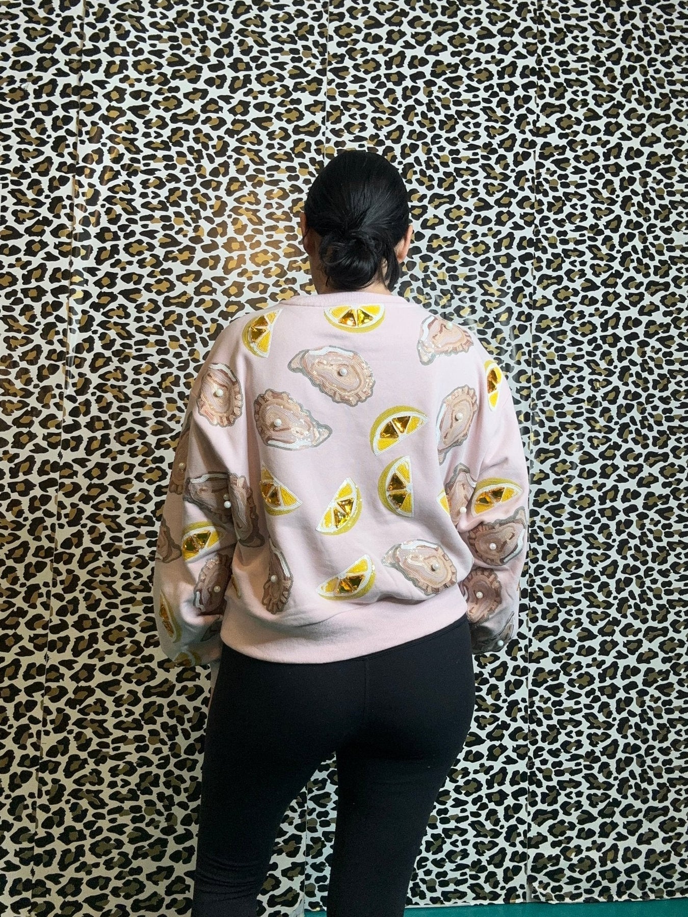 Get ready to feel sparkly with the Queen of Sparkles Pale Pink Oysters & Lemons Sweatshirt. Made with luxurious fabric, this sweatshirt combines playful pale pink oysters and zesty lemons for a unique and quirky design. Perfect for adding a touch of sparkle to any outfit, be the queen of your own sparkle kingdom!