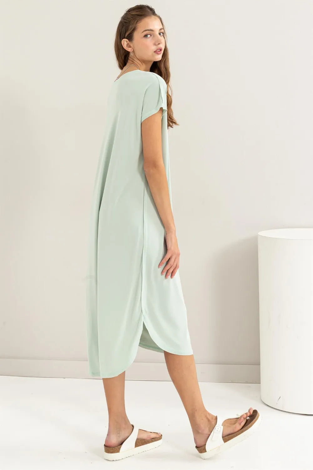 HYFVE Short Sleeve High-Low Slit Midi Dress