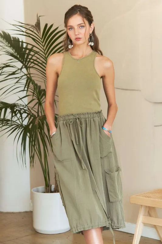 The Drawstring Sleeveless Washed Dress is a casual yet stylish piece for everyday wear. With its sleeveless design and relaxed silhouette, this dress offers both comfort and fashion-forward appeal. The drawstring detail adds a touch of customization to the fit, making it versatile for various body shapes. Embrace laid-back elegance with this washed dress for a effortlessly chic look.
