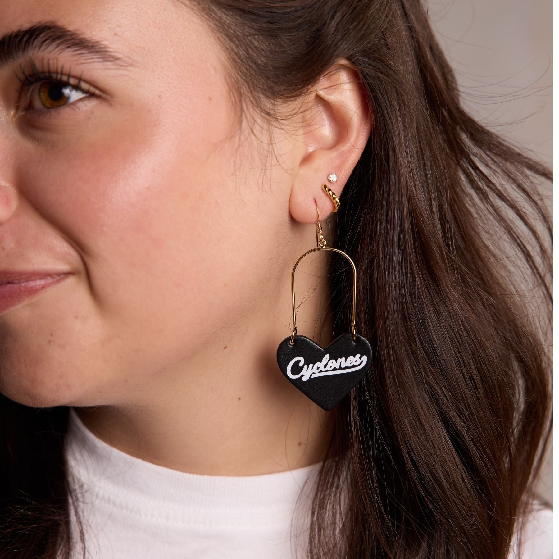 Elevate your game day look with our Black Iowa State University Cyclones Script Heartthrobs. A cute and chic game day earring that's perfect for showing off your team spirit in style.