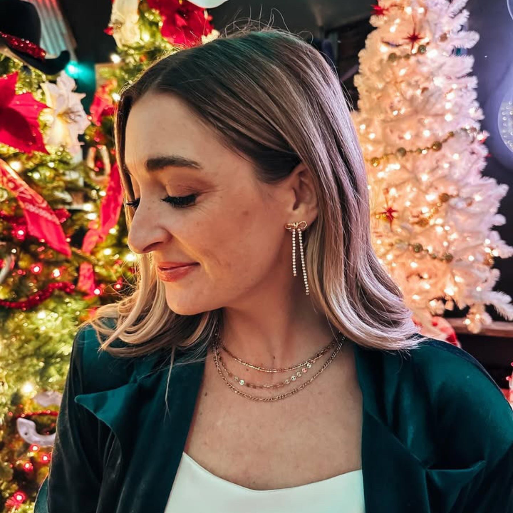 Make an elegant statement with movement and sparkle. Featuring long strands of crystal rhinestones on a beautiful bow stud, you'll add a touch of any glamour to any look.