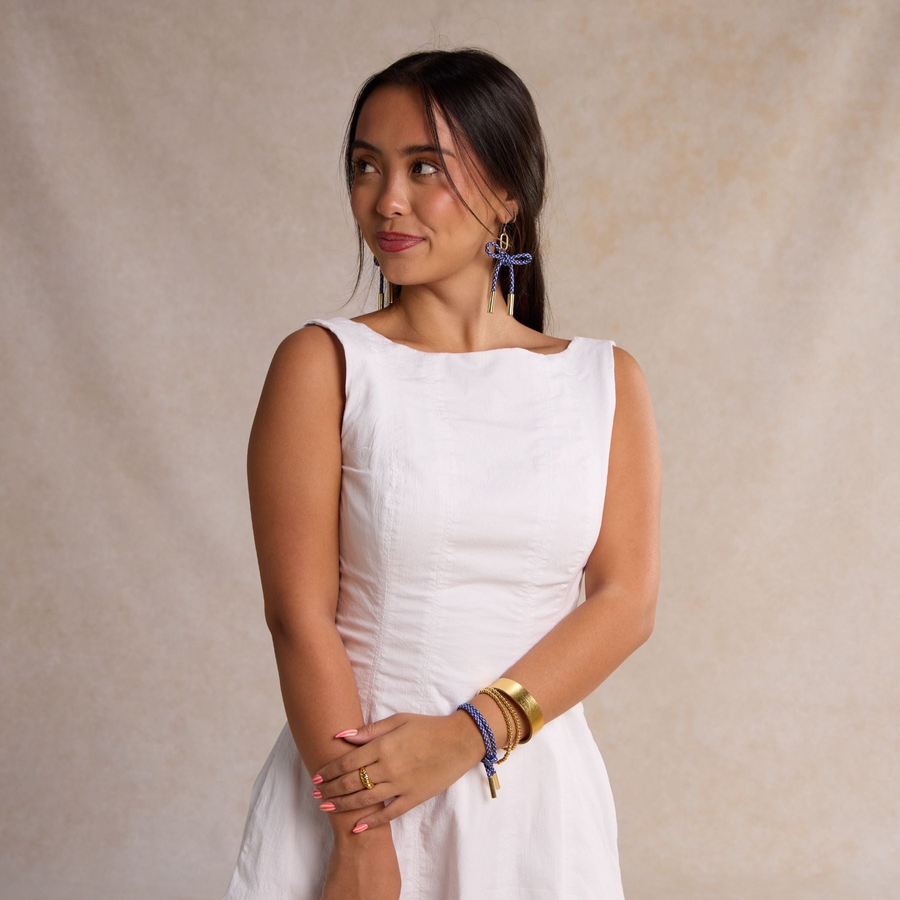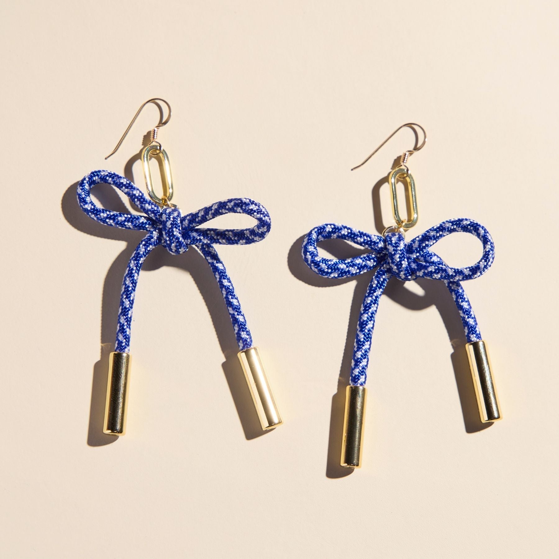 A fresh spin on our best-selling cord earrings — meet the Simone in blue and white. This lightweight statement piece is crafted from durable nylon paracord and set on your choice of 14k gold-filled or rhodium-plated sterling silver hooks. Bold yet versatile, it's the perfect pop of color for game day, vacation outfits, and everyday adventures.
