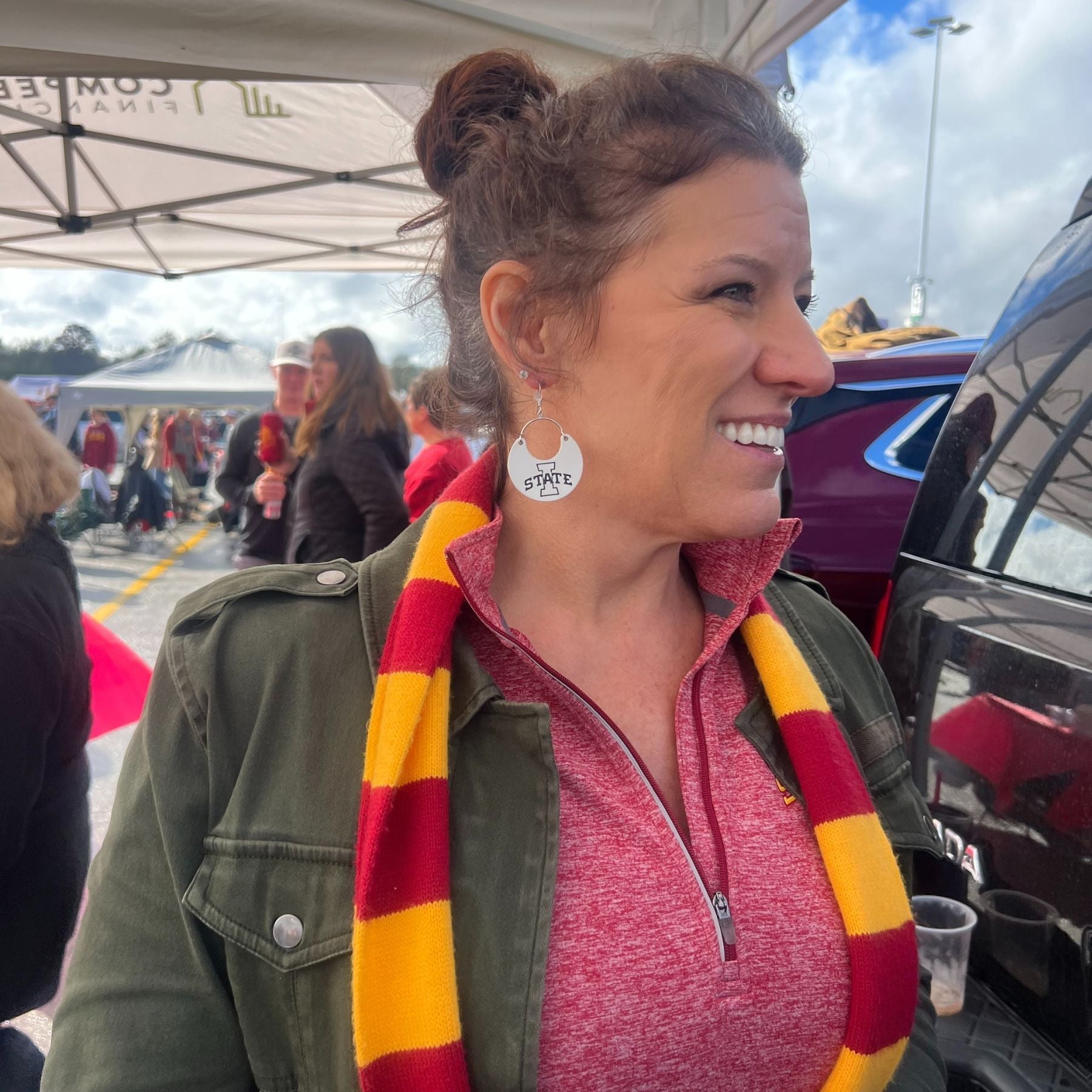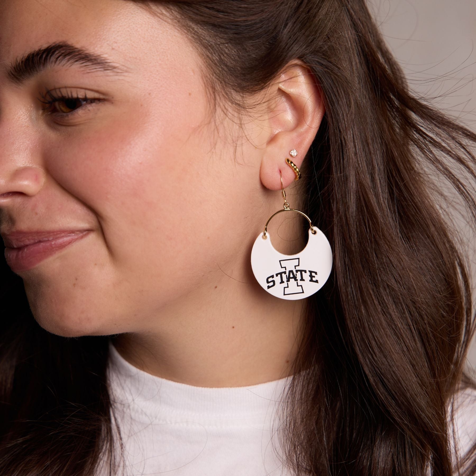 Elevate your game day look with our White Iowa State University Ninas. A cute and chic game day earring that's perfect for showing off your team spirit in style. These black and white Nina earrings are perfect for showing off your Iowa State University pride!