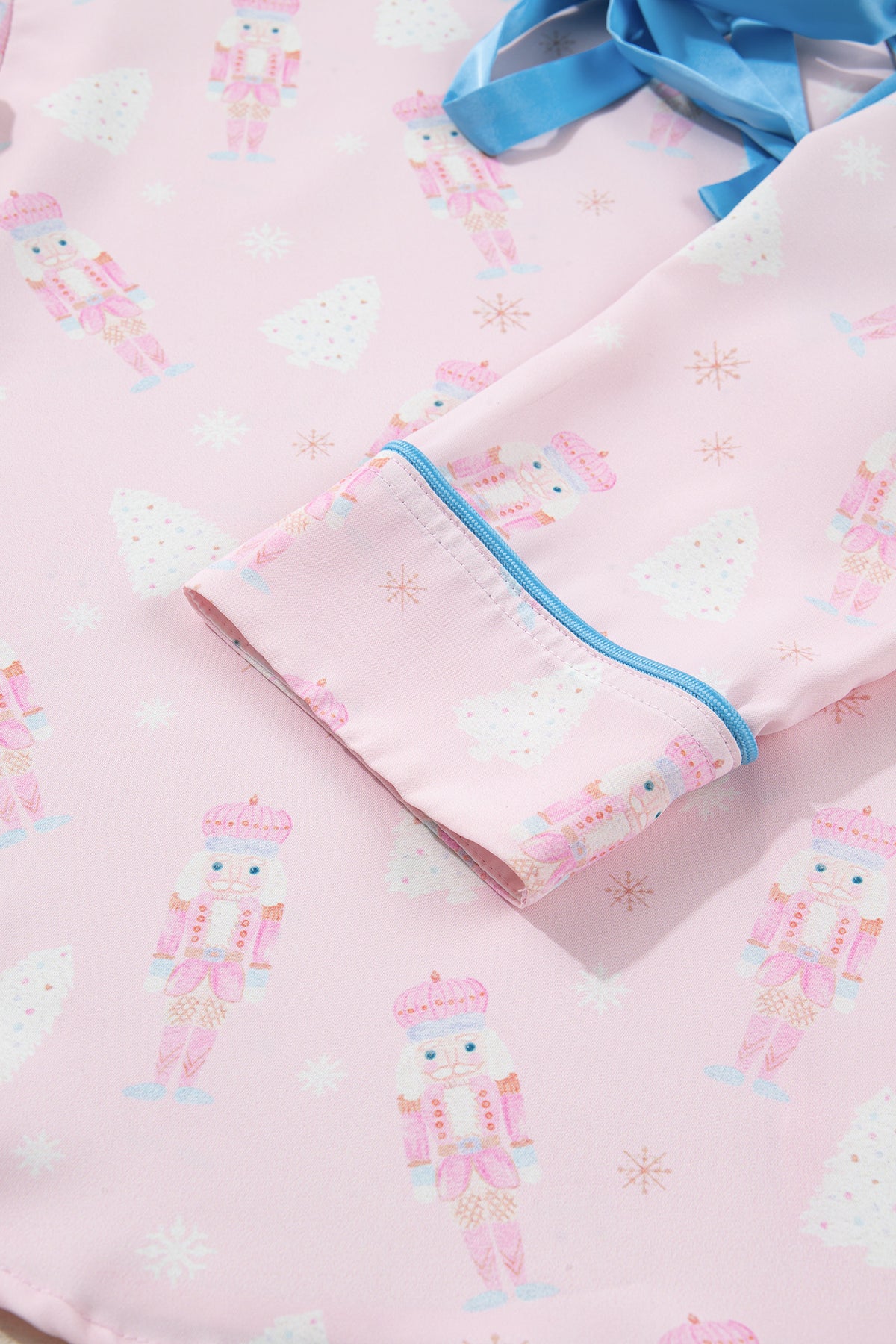 Pink Bow Tie Front Christmas Nutcracker Long Sleeve Shirt Shorts Pajama Set