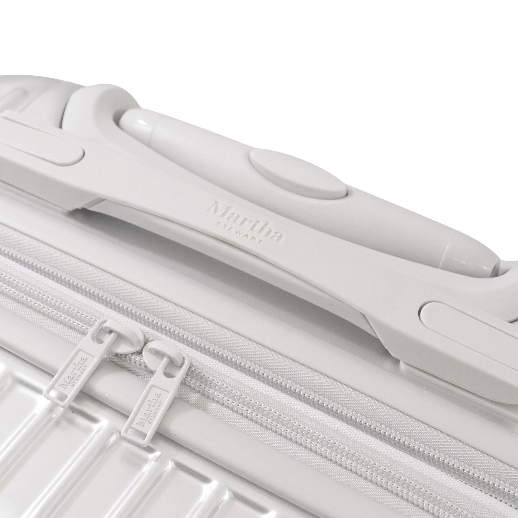 Travel elegantly and efficiently with the Martha Stewart Bedford 26" Hardside Spinner. Designed for those who value both style and practicality, this mid-size suitcase offers a sleek, durable hard shell exterior that resists impact and scratches. It features 360° spinner wheels for effortless movement and a telescopic handle that glides smoothly through airports. The fully lined striped interior includes compression straps, a mesh divider, and zippered compartments for easy organization. Ideal for longer trips, this spinner delivers the perfect blend of sophistication, functionality, and travel-ready durability.