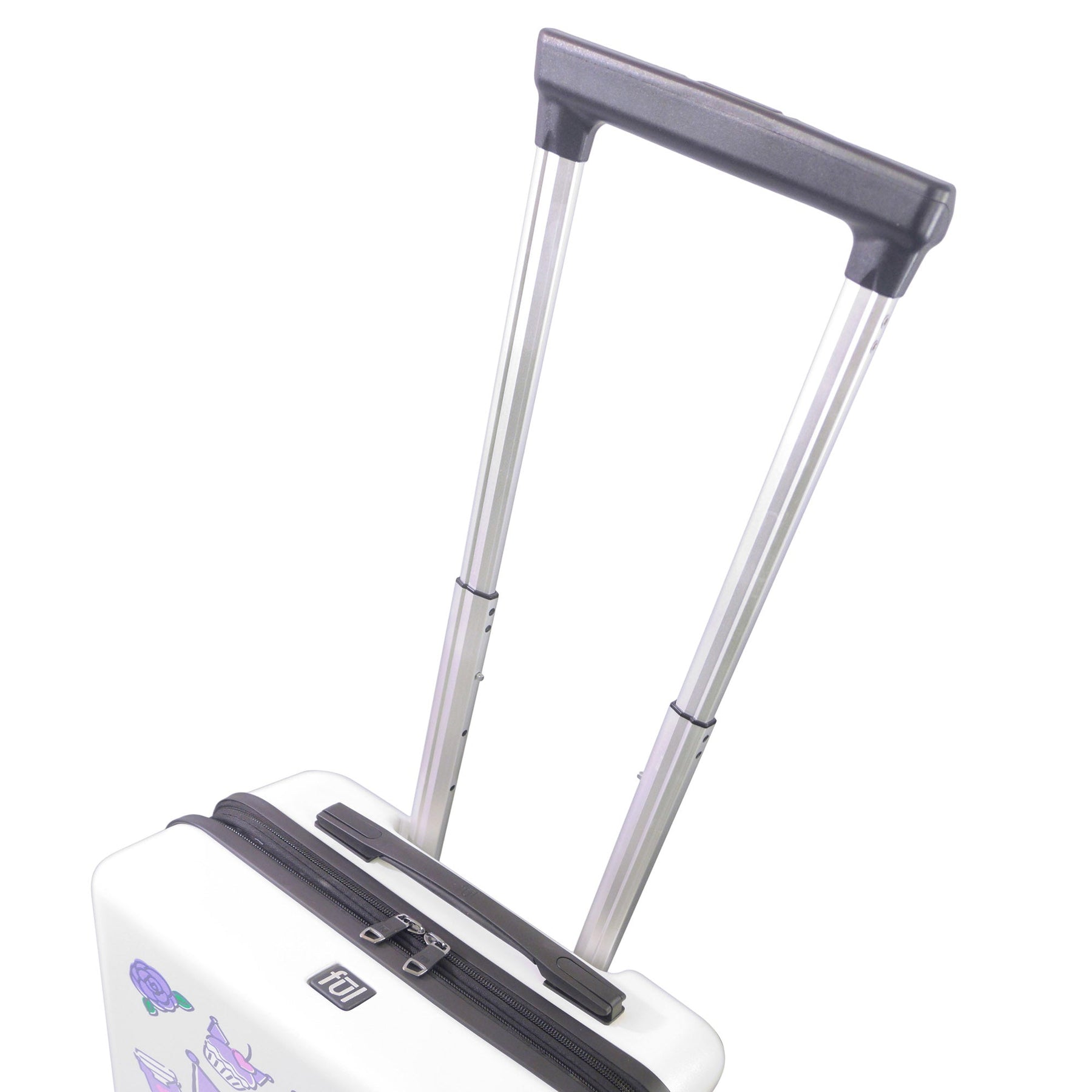 Travel in ultimate kawaii style with this officially licensed Sanrio carry-on from FŪL, featuring the mischievous Kuromi and nods to her sweet rival, My Melody. With playful icons like cupcakes, bows, and beauty essentials, this hard-shell spinner is perfect for fans who love cute vibes with a little edge. Whether you're team Kuromi or team My Melody, this carry-on makes every trip a little more adorable.