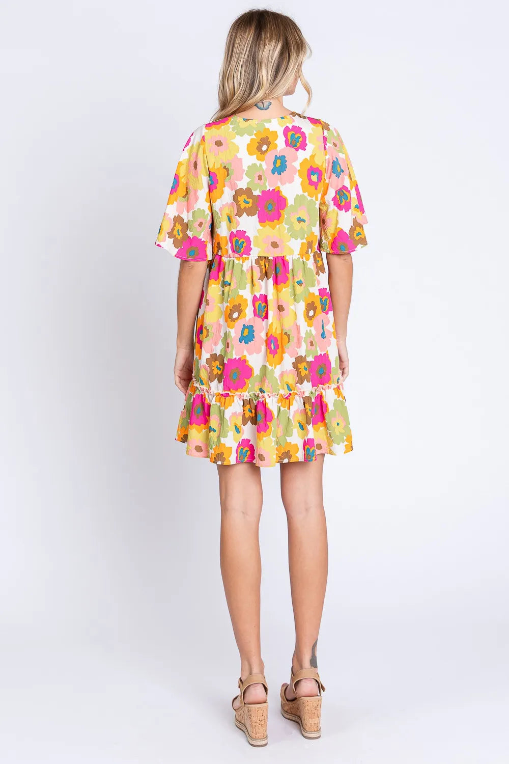 GeeGee Floral V-Neck Ruffle Hem Mini Dress