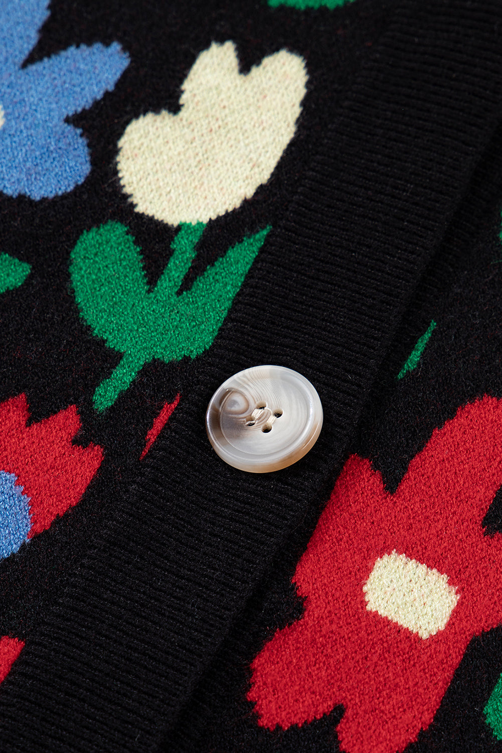Meet Zariah Print Short Cardigan Sweater—effortless, flattering, and easy to style for everyday life. This short cardigan is elegant and dressy for any occasion. It features gorgeous floral pattern throughout the silhouette. The buttoned front design is convenient for wearing and easy to layer. The v neck is feminine and perfect to wear with fave necklace.