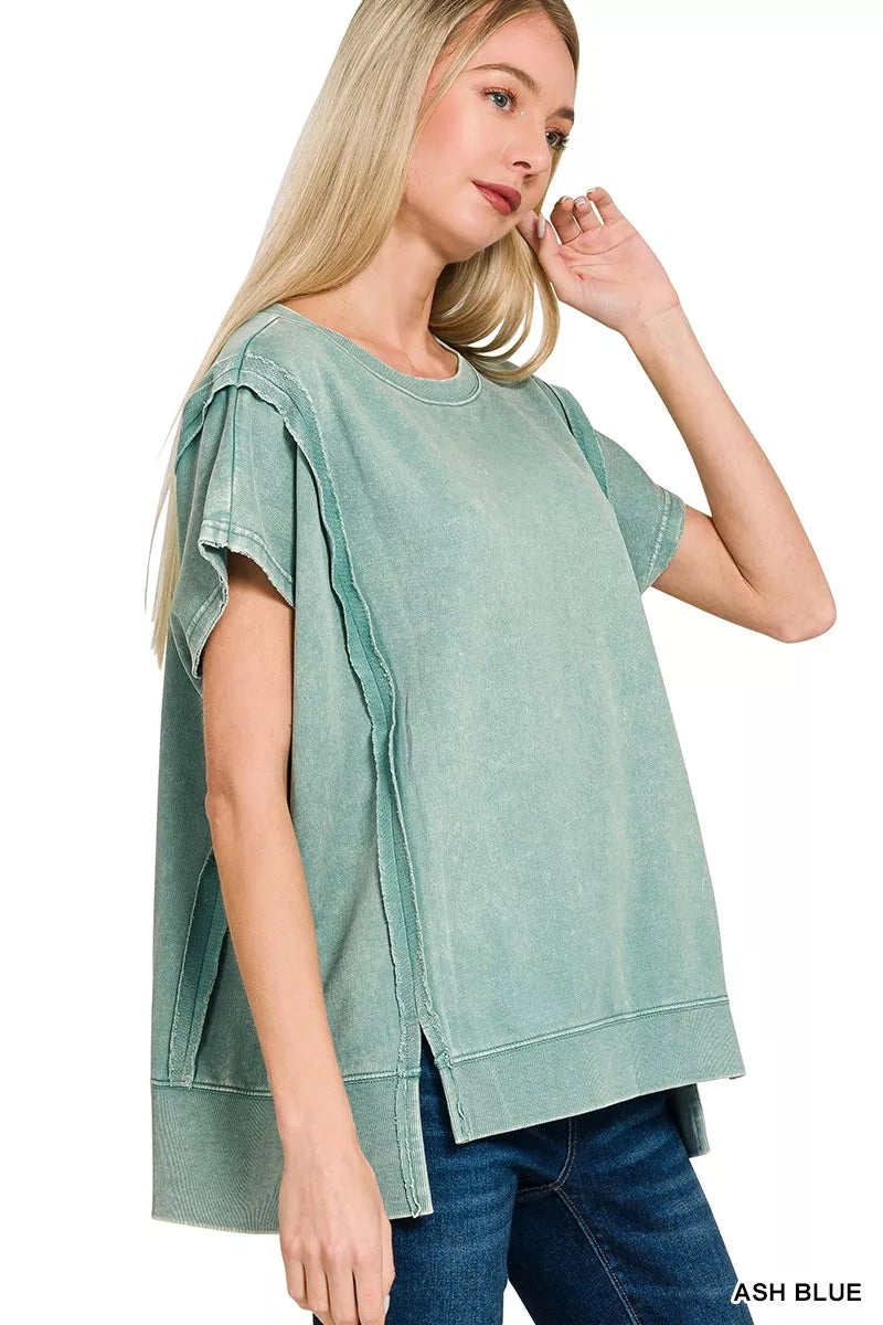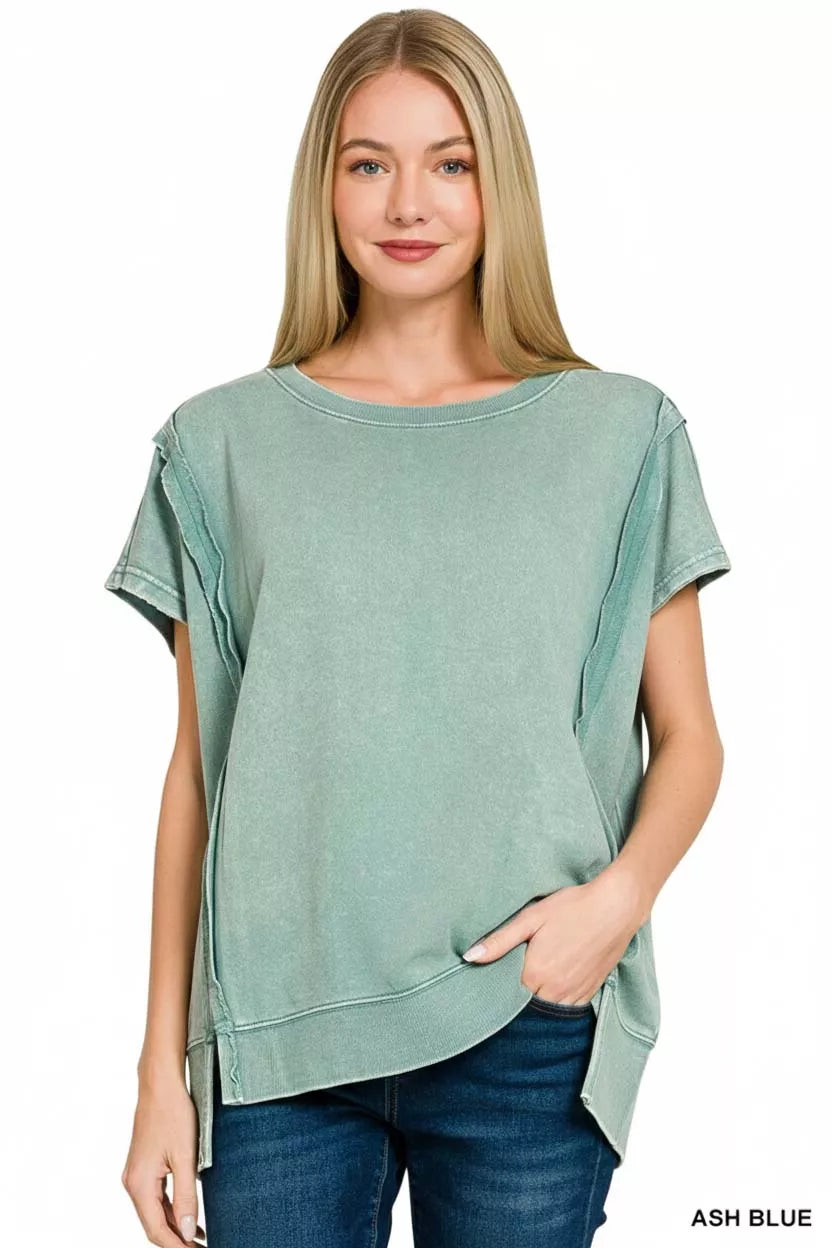 Zenana French Terry Acid Washed Hi-low Top