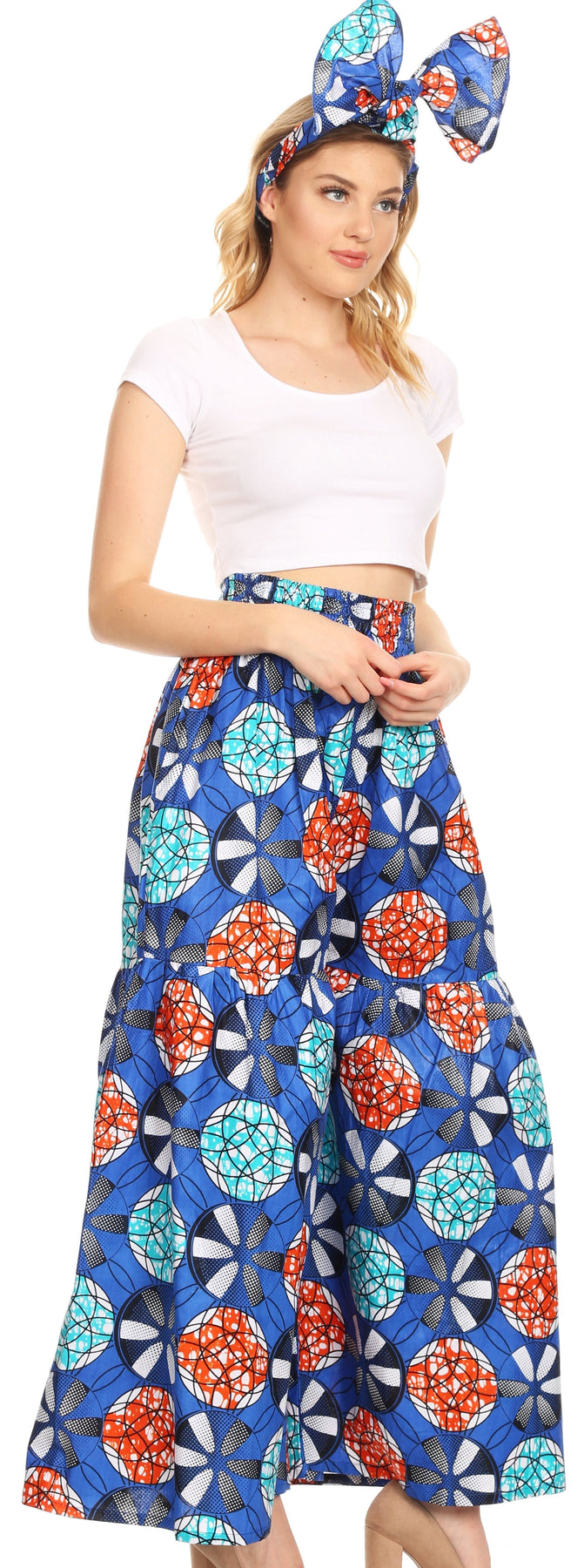 Sakkas Esme Women's African Ankara Flared Wide Leg Palazzo Pants with Pockets
