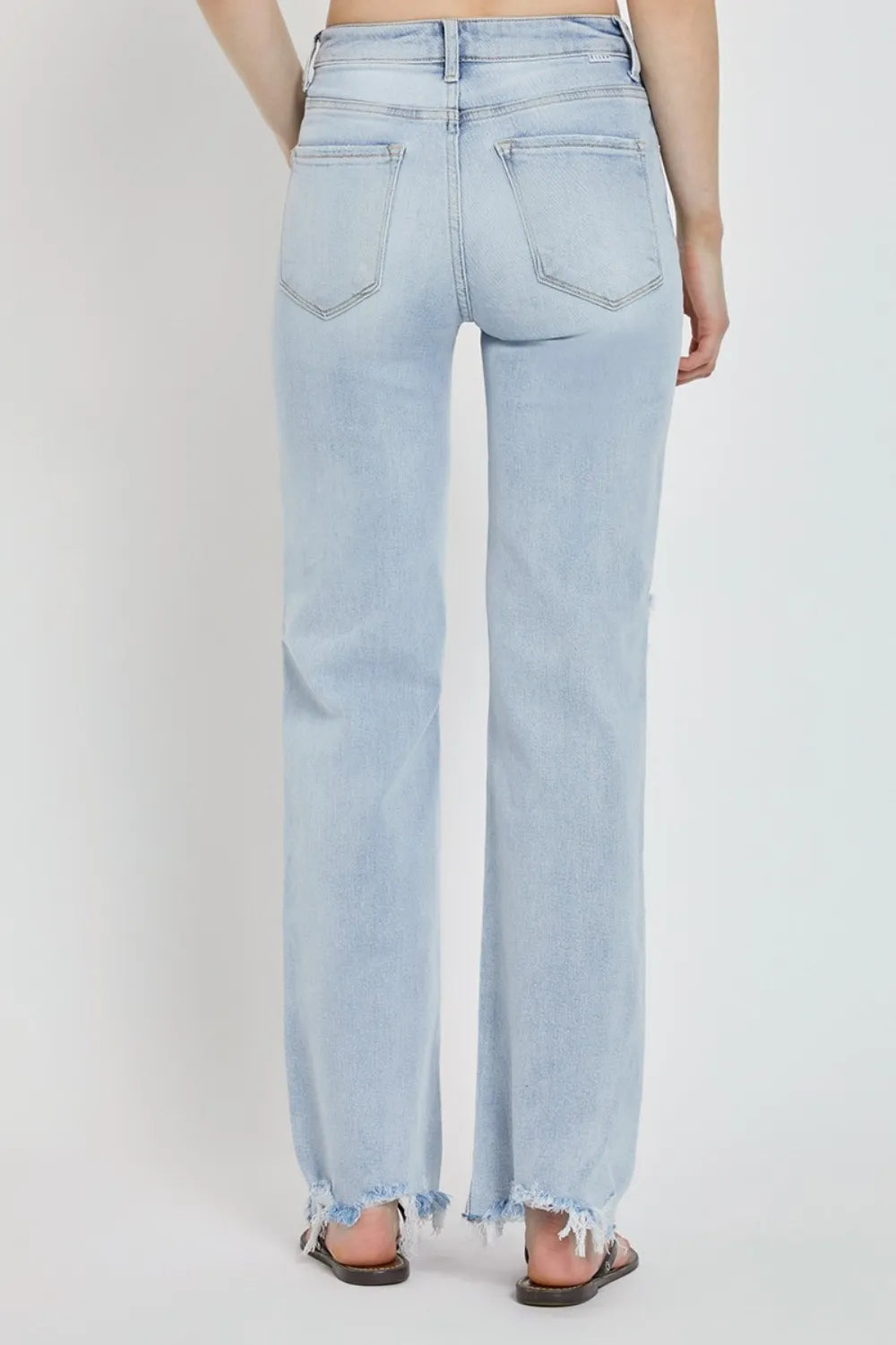 These high rise distressed wide leg jeans are a trendy and edgy addition to your denim collection. The high rise waist provides a flattering and slimming silhouette. The distressed detailing adds a cool and casual vibe to the jeans. The wide leg cut is chic and on-trend, perfect for creating a statement look. Pair them with a cropped top or tucked-in blouse for a fashion-forward outfit. These jeans are versatile and can be dressed up or down for any occasion.