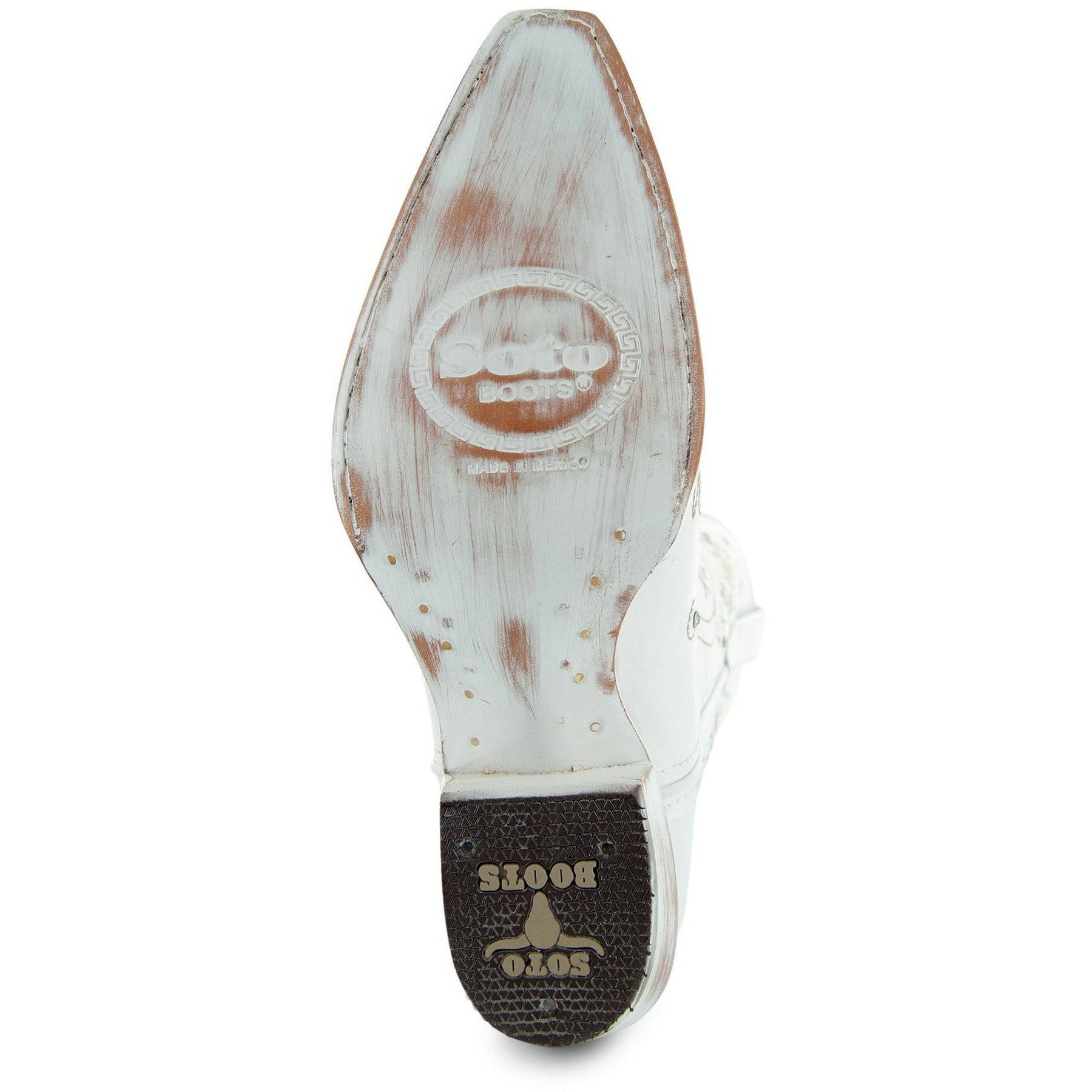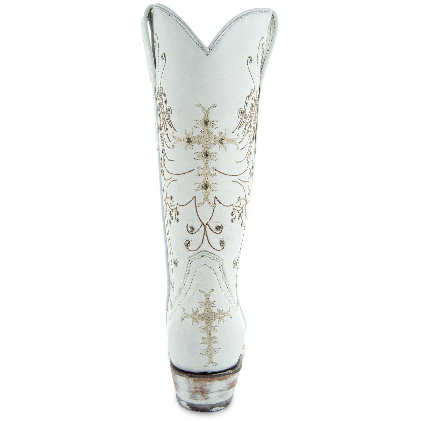 Looking for country wedding boots? Something stunning for a special occasion? Something comfortable? These white leather rhinestone boots are just what you need. From Soto Boots, these handcrafted western boots are designed to be beautiful and elegant, with a touch of cowgirl attitude. Crafted by hand of genuine leather, these gorgeous white cowgirl boots display a subtle cross design on the center of the shaft. The cross is surrounded by classic Western patterns in gold embroidery. Rhinestones enhance the beauty, giving the 12-inch shaft and foot a touch of glitz. Our White Rhinestone Cowgirl Boots coordinate perfectly with a wedding dress, as well as denim jeans, shorts, and other styles.