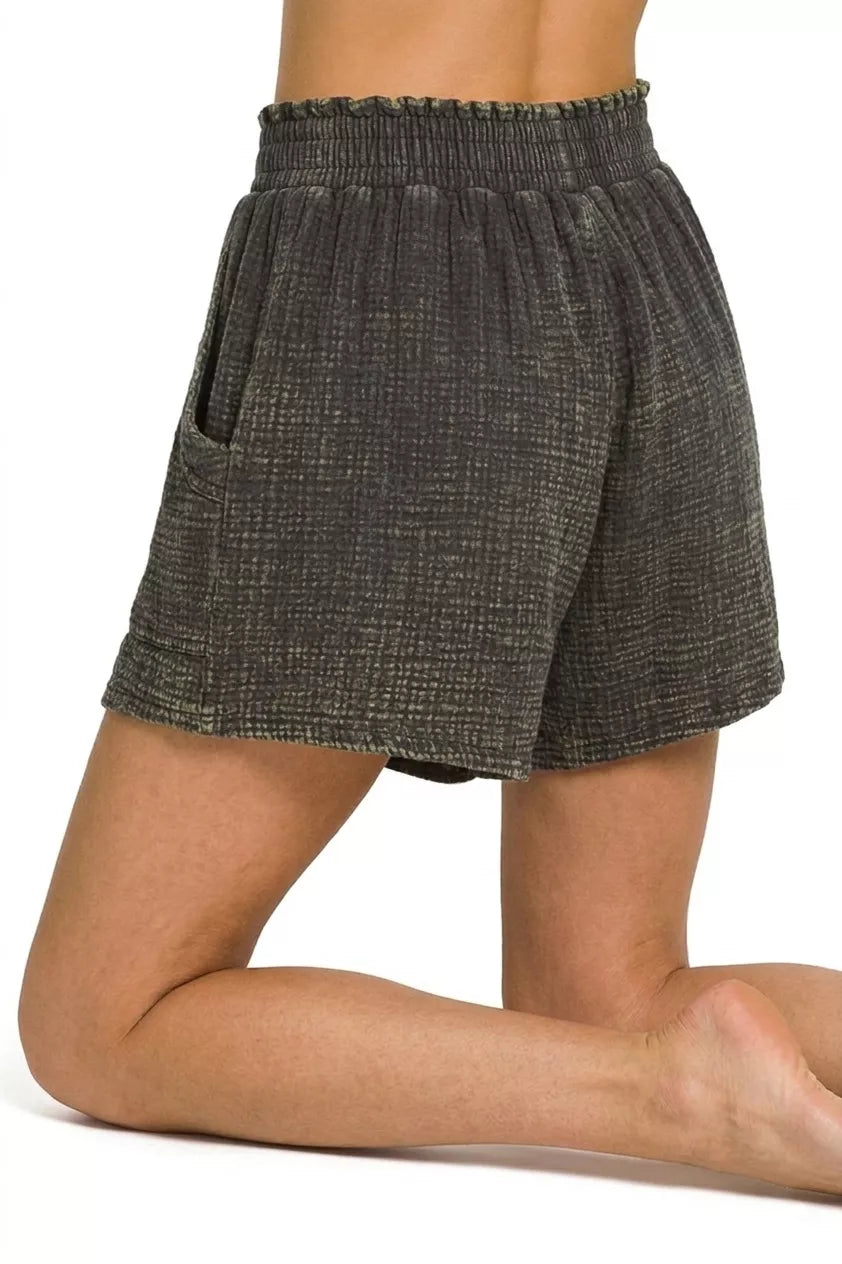 Zenana Washed Double Gauze Shorts
