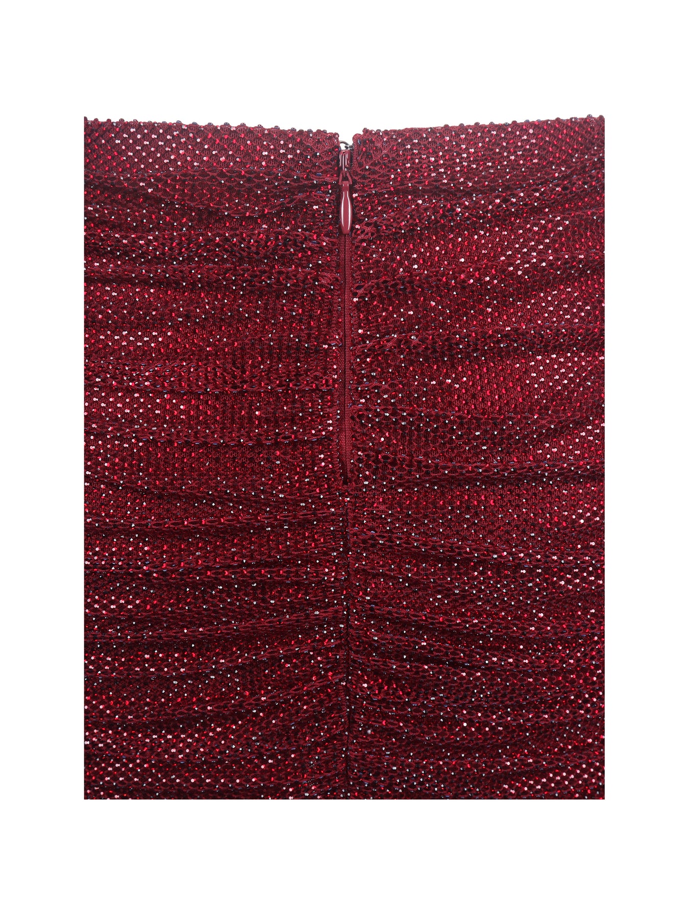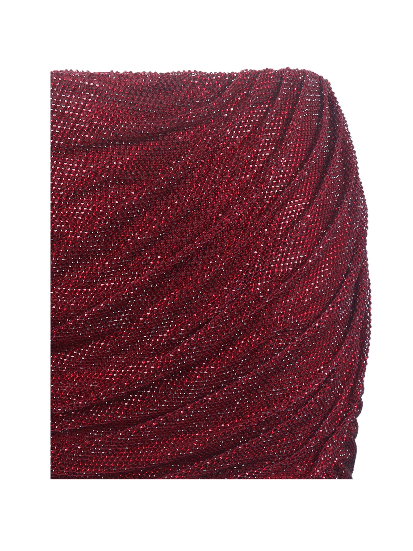 Bring the sparkle this season with the Darleen Skirt, a crimson red showstopper that catches the light from every angle. Cut from ruched rhinestone mesh with the illusion of a wrap silhouette, it hugs the hips and sits low on the waist for a sultry fit. Fully lined in satin for a smooth, comfortable finish, it’s secured with an invisible back zipper to keep the lines sleek. Perfect for holiday parties, New Year’s Eve celebrations, or any night you want to shine brighter than the disco ball. Pair it with the matching Darla Off-Shoulder Top for a coordinated look that’s equal parts festive and unforgettable.