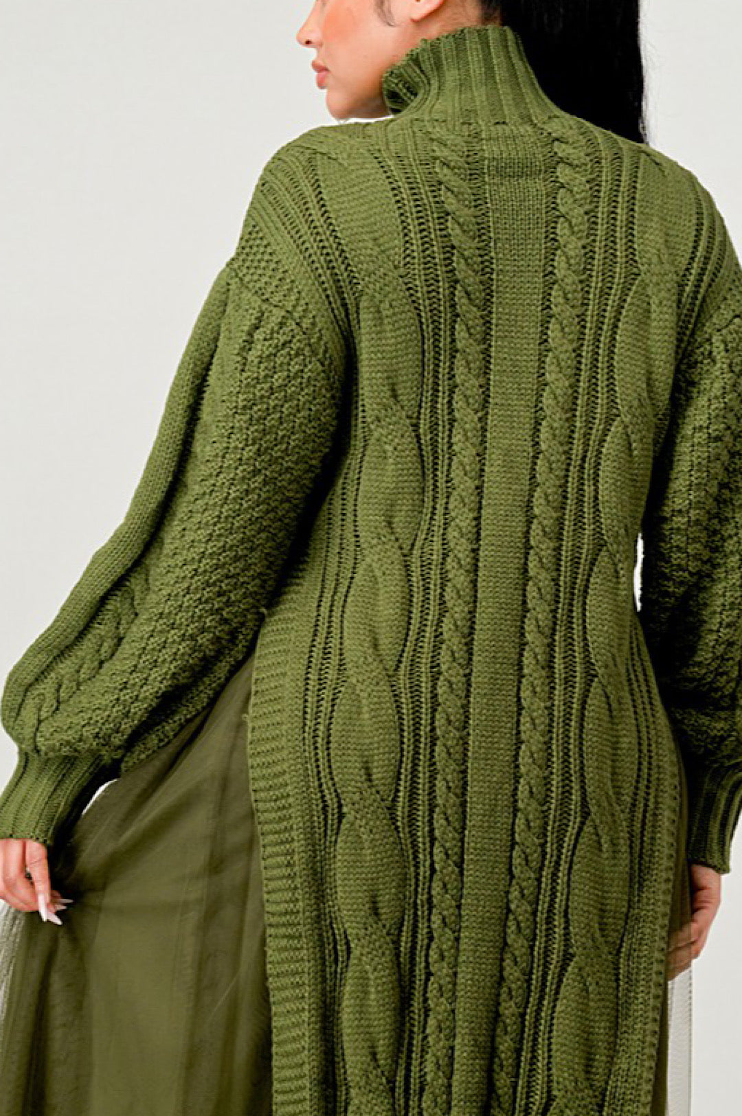 All sizes are in stock and ready to ship now. Runs big. Please order your size based on the numbers. For example, I typically wear between a 12-14 and 14-16 but when I tried this two piece set on, the small fits me perfectly. I am 5 feet 6 inches tall with bust of 42 inch, waist 34 inches and hips 47 inches. Waistband has plenty of elastic and stretch. The sweater also stretches a lot and the sweater will also expand more once it is steamed, pressed or ironed out. This Olive Green Knit Tulle Two Piece Skirt Set is a luxurious and stylish choice. Crafted with a soft knit top and a tulle skirt, it creates a stunning ensemble. Its exclusive design is both comfortable and eye-catching. Enjoy an outfit that is sure to be a statement piece in any wardrobe. Long knit sweater top paired with tulle skirt. Sweater top has high mock neckline, full sleeves and high side slits. Looks great with or without the tie sash belt that comes with the set. Sweater top also looks wonderful when worn with jeans, pants or leggings. Skirt could also be worn separately with a blouse.