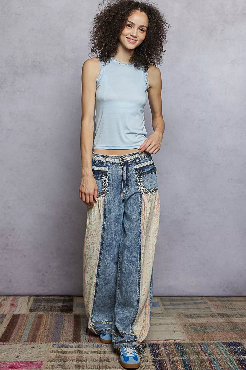 This top features a round neck and a fitted sleeveless silhouette, made from comfortable jersey fabric. It is adorned with elegant lace trim details. The design offers a sleek and flattering fit. Perfect for layering or wearing on its own, this top is versatile for various occasions.