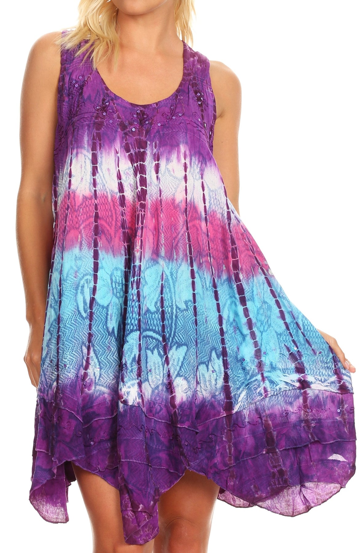 Sakkas Artemi Women's Casual Short Tie-dye Sleeveless Loose Tank Dress Cover-up