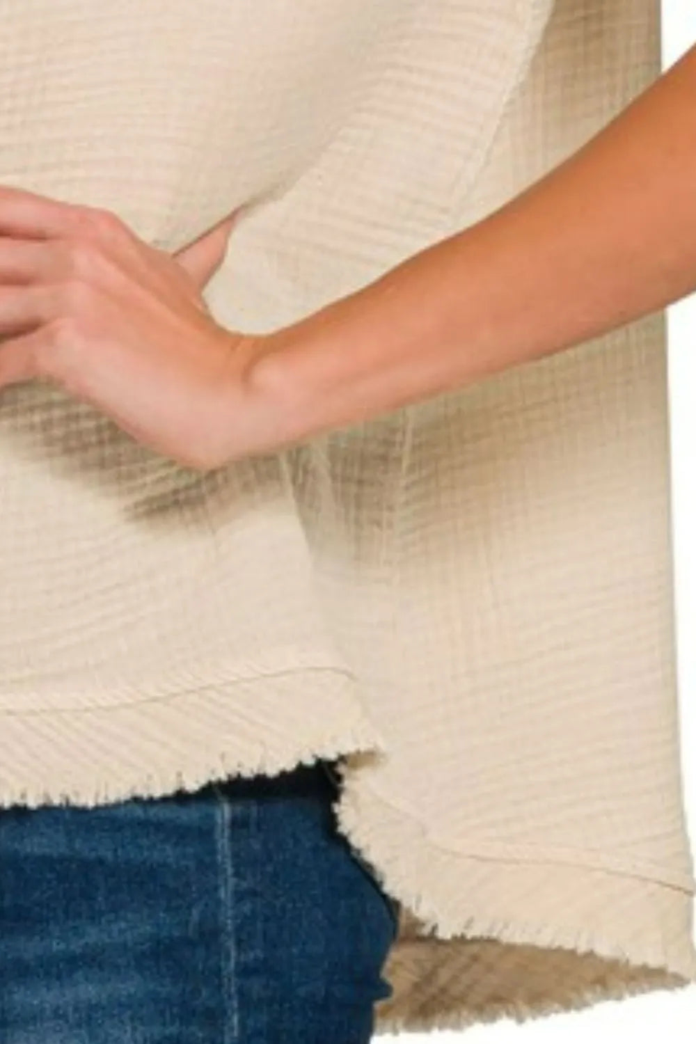 Zenana Double Gauze Raw Edge V-Neck Tank