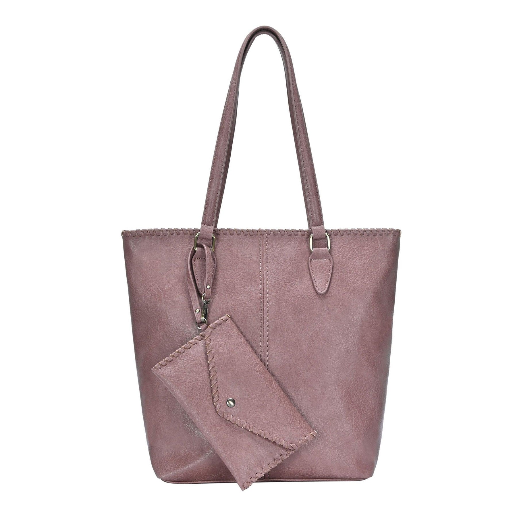 The Caroline is an irresistible classic, made from the most buttery soft vegan leather. It features a classic tote silhouette and has a touch of whipstitching trim along the top and around the detachable wristlet. With a spacious interior, this north/south tote can hold a laptop/tablet up to 13"! Tuck away small items in the wristlet, like a phone, card holder, keys, or airpods. Remove the wristlet for a simplified look, and make the Caroline your new everyday go-to.