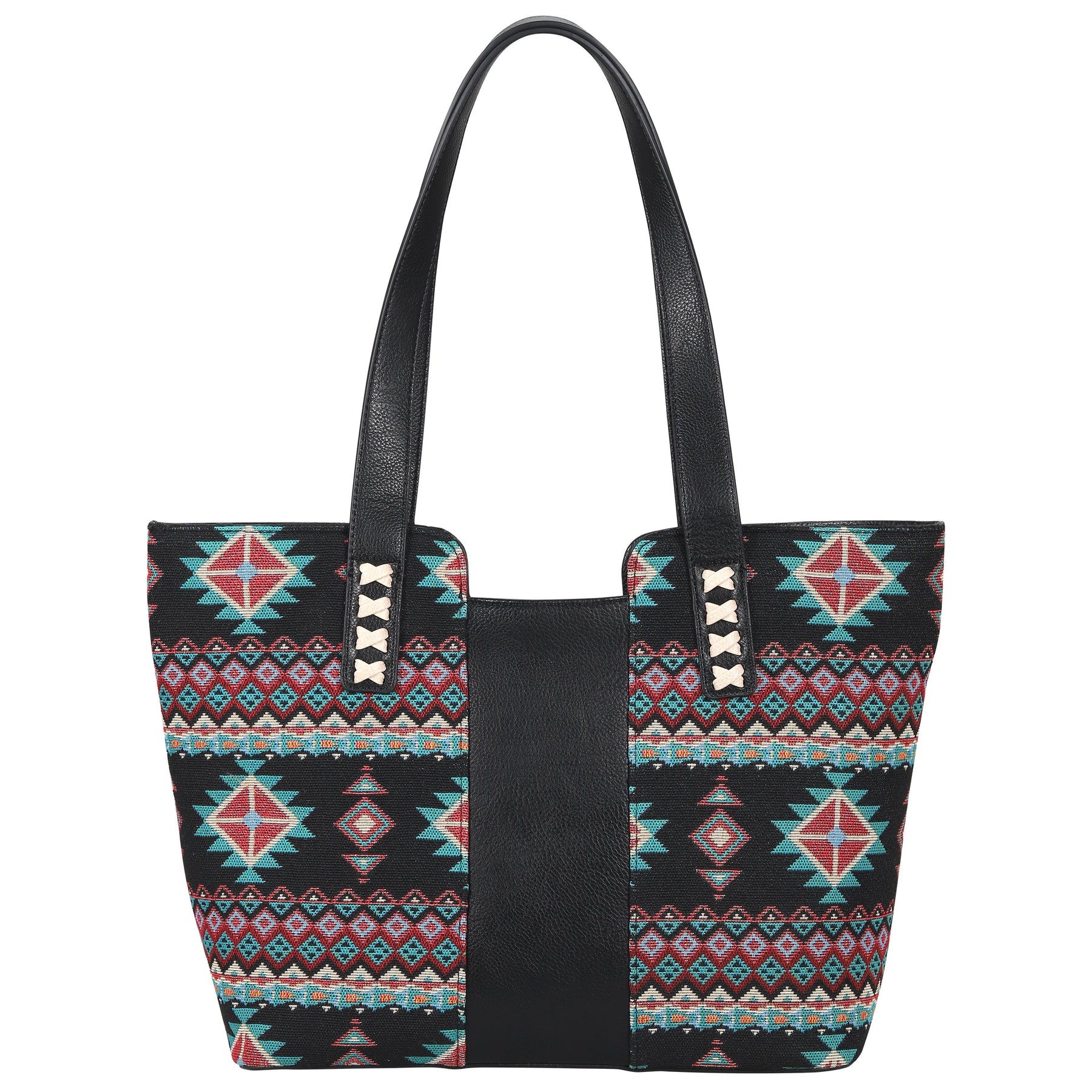 The Wrenly Tote by Lady Conceal blends everyday sophistication with purposeful design. Available in rich PU leather tones or bold Aztec-inspired woven patterns, the Wrenly offers the perfect balance of timeless style and distinctive character. Thoughtful details, including braided accents, a reinforced base with metal feet, and comfortable shoulder straps, provide durability and all-day comfort. The spacious, fully lined interior is crafted with two deep open slip pockets, the back has a zippered pocket, a large open pocket for your cell phone, and a key strap. The shoulder straps measure 23" in length with a 12" drop for comfortable carry.