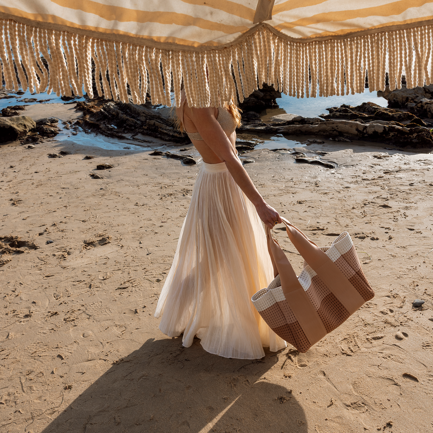 Our best selling beach bag. With its perfect shape and all-purpose function, this cult-favorite tote is perfect for days at the pool or in the sand.