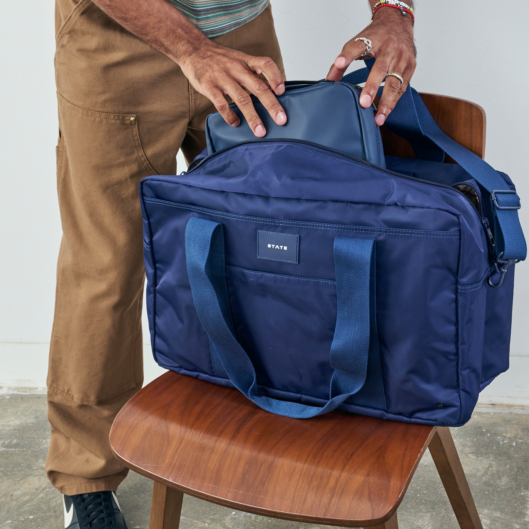 The ultimate weekender bag you’ve been looking for. This duffle-style carry-on slides onto your suitcase with a travel sleeve and is built with thoughtful details like a padded laptop pocket, multiple interior compartments, and detachable pouches for shoes or laundry. Designed for overpackers who want a travel bag that keeps them organized and looking put together.