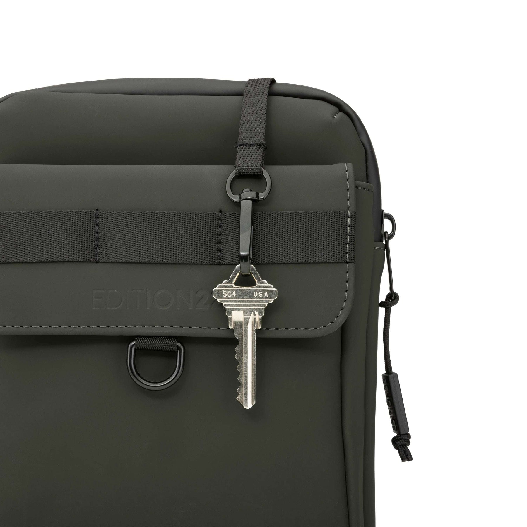 The Edition22 Lockpoint Crossbody Bag is a modern, gender-neutral bag built for modern life. The front flap pocket is a great place for a phone, business cards, anything you need quick and easy access to. The interior zippered pocket keeps your wallet, AirPods, or any other accessories safe. Coupled with an AirTag holder and key leash you'll always know where your belongings are. The polyurethane faux leather is durable and comes in two neutral colors to match any fit.
