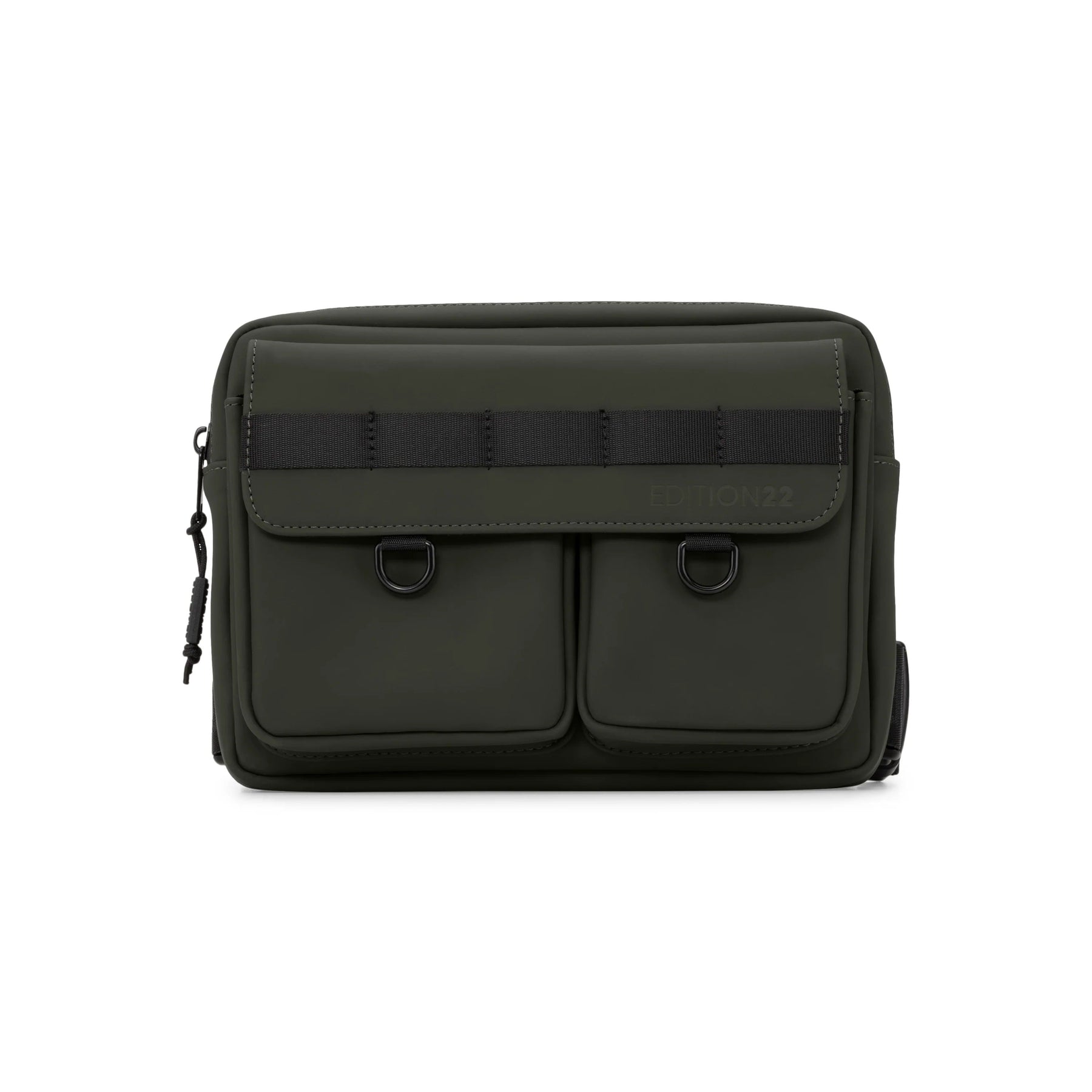 The Edition22 Frontal Sling Bag is a convenient and modern way to keep your daily necessities close. A sling bag keeps your small valuables close and secure. Front pockets make them accessible; a main zippered compartment keeps them safe. Always losing your things? Edition22 has fitted this with an AirTag holder, so you'll always be able to keep track of it. The polyurethane leather exterior is durable and the crossbody straps are adjustable or removable so you can adapt your bag to fit your style. Available in two sleek colors that are sure to match your fit.