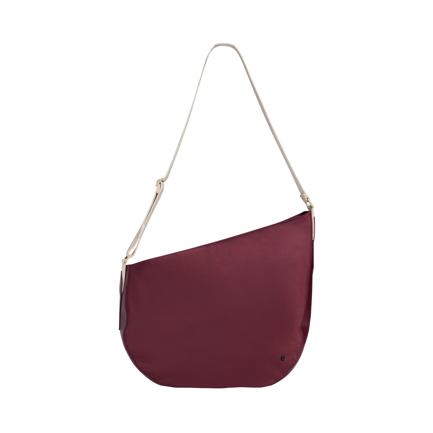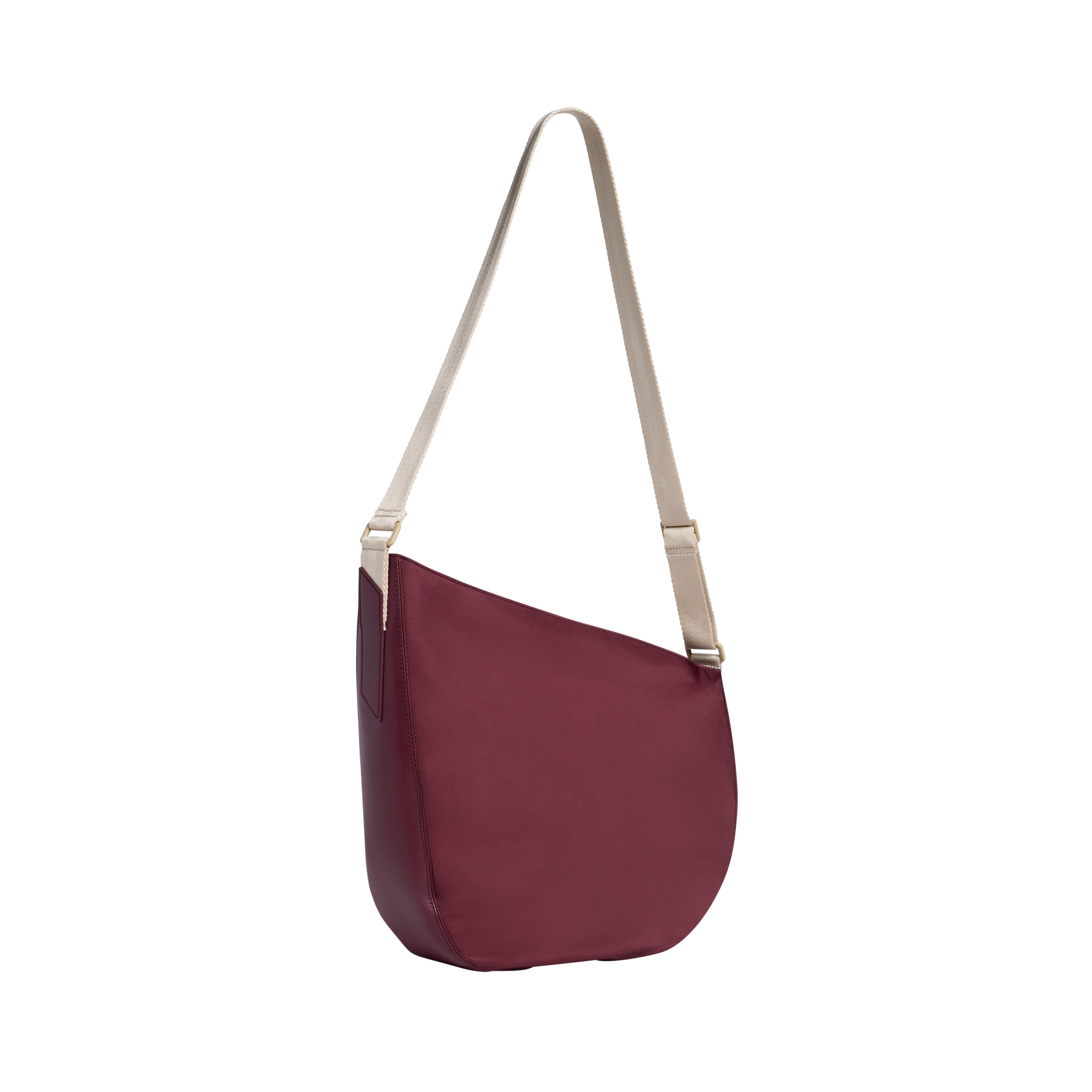 This large crossbody bag slings comfortably across your body with an adjustable strap. It includes a laptop sleeve, interior pockets, two detachable pouches, and a hidden top zippered pocket.