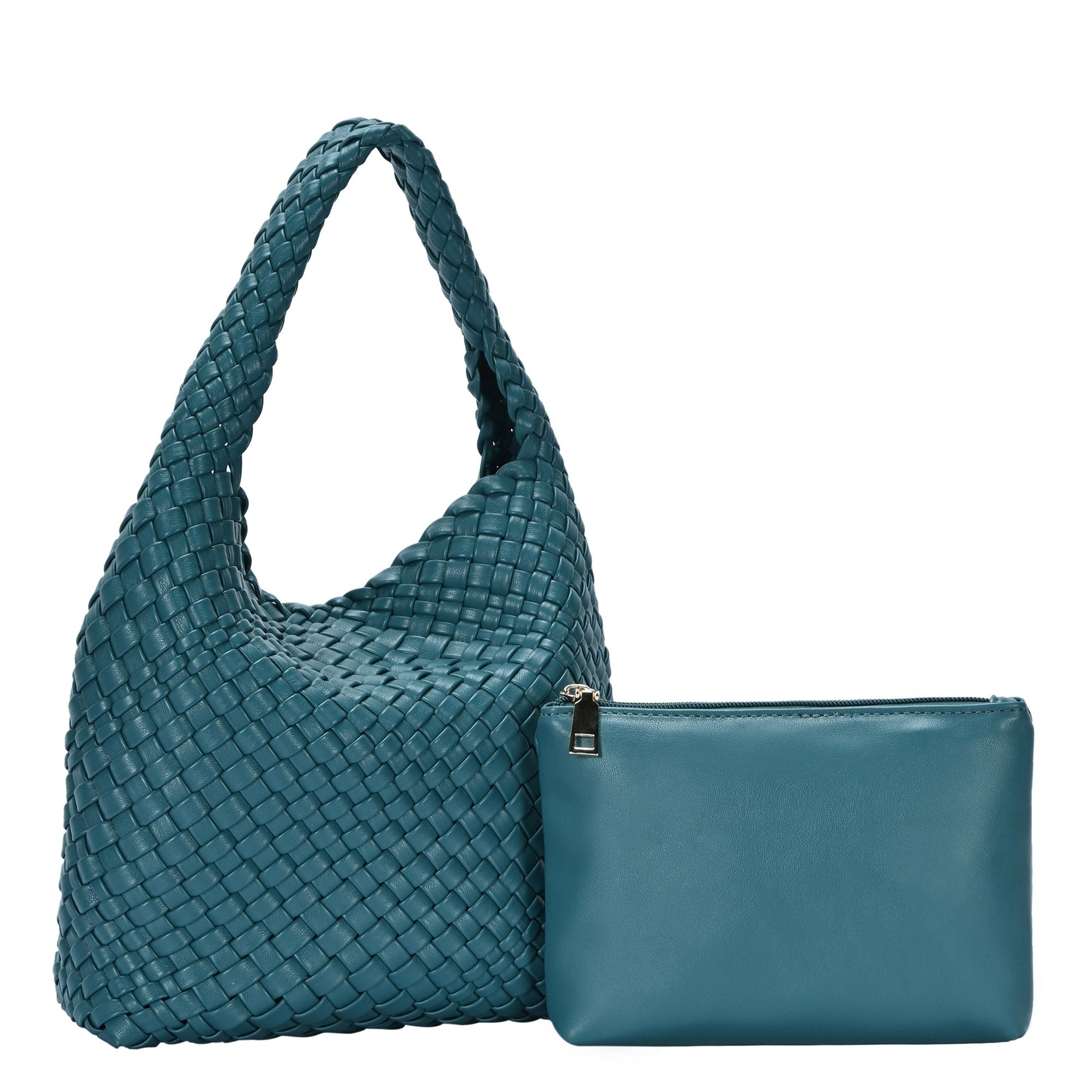 Elevate your style with the Parker 2 in 1 Woven Satchel by Antik Kraft – a minimalistic yet elegant statement piece for your wardrobe. Crafted from handwoven vegan leather and accented with light gold hardware, this satchel combines sophistication with functionality. The soft weave texture feels luxurious to the touch, while the integrated 2 in 1 pouch offers versatile storage options. A magnetic button closure secures the main compartment, ensuring your essentials are always within reach and safely stowed. Whether you're heading to the office or out for a casual day, the Parker Satchel is the perfect accessory to carry your everyday essentials in style.