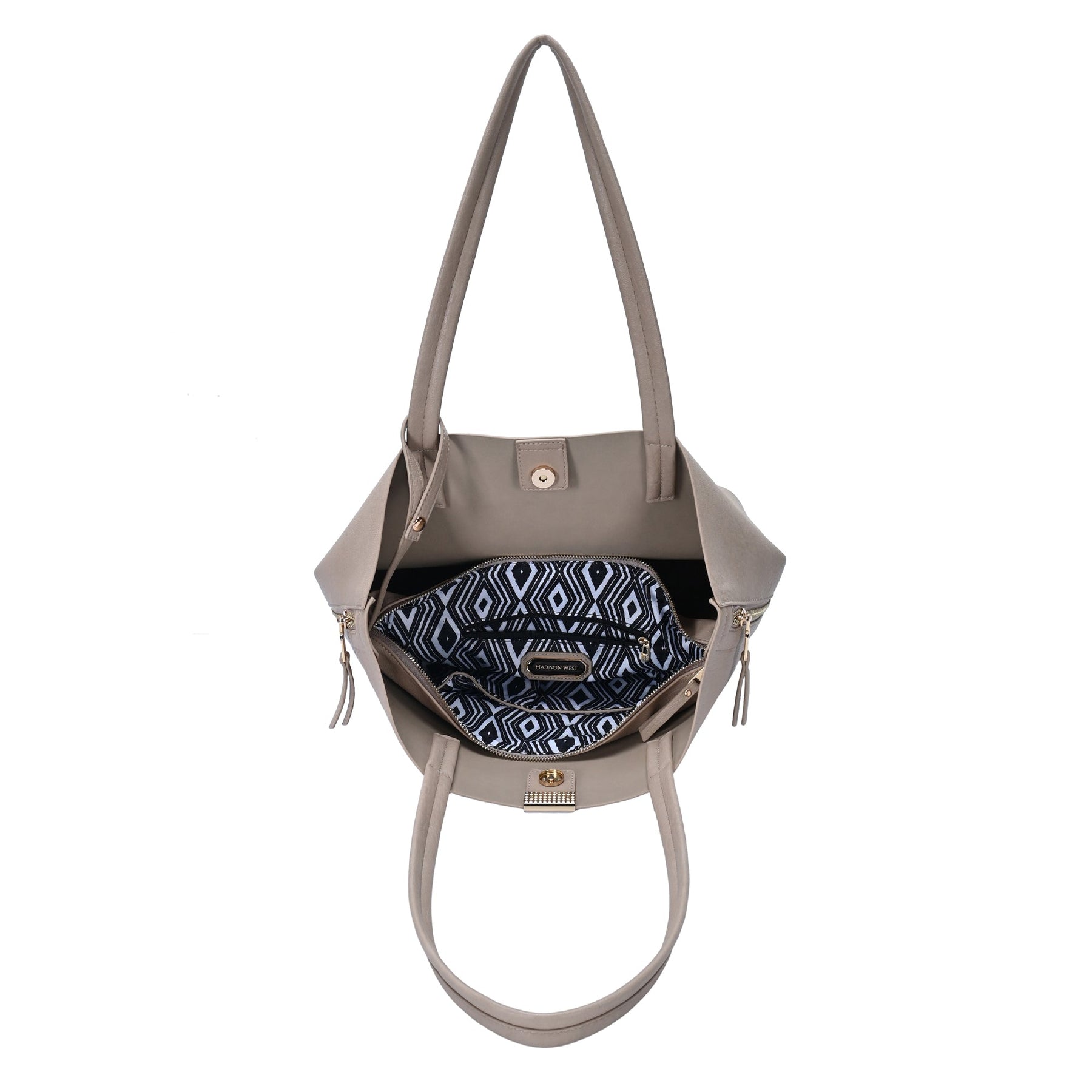 Let your styling do the talking with the Scarlett Tote - a timeless, minimalist tote with subtle light gold hardware details. Crafted with supple vegan leather and a firm flat bottom design, this tote will ensure your belongings stay secure and chic. Open the magnetic snap button to reveal a multifunctional inner pouch - wear it separately for a pop of color or keep it inside for effortless organization.