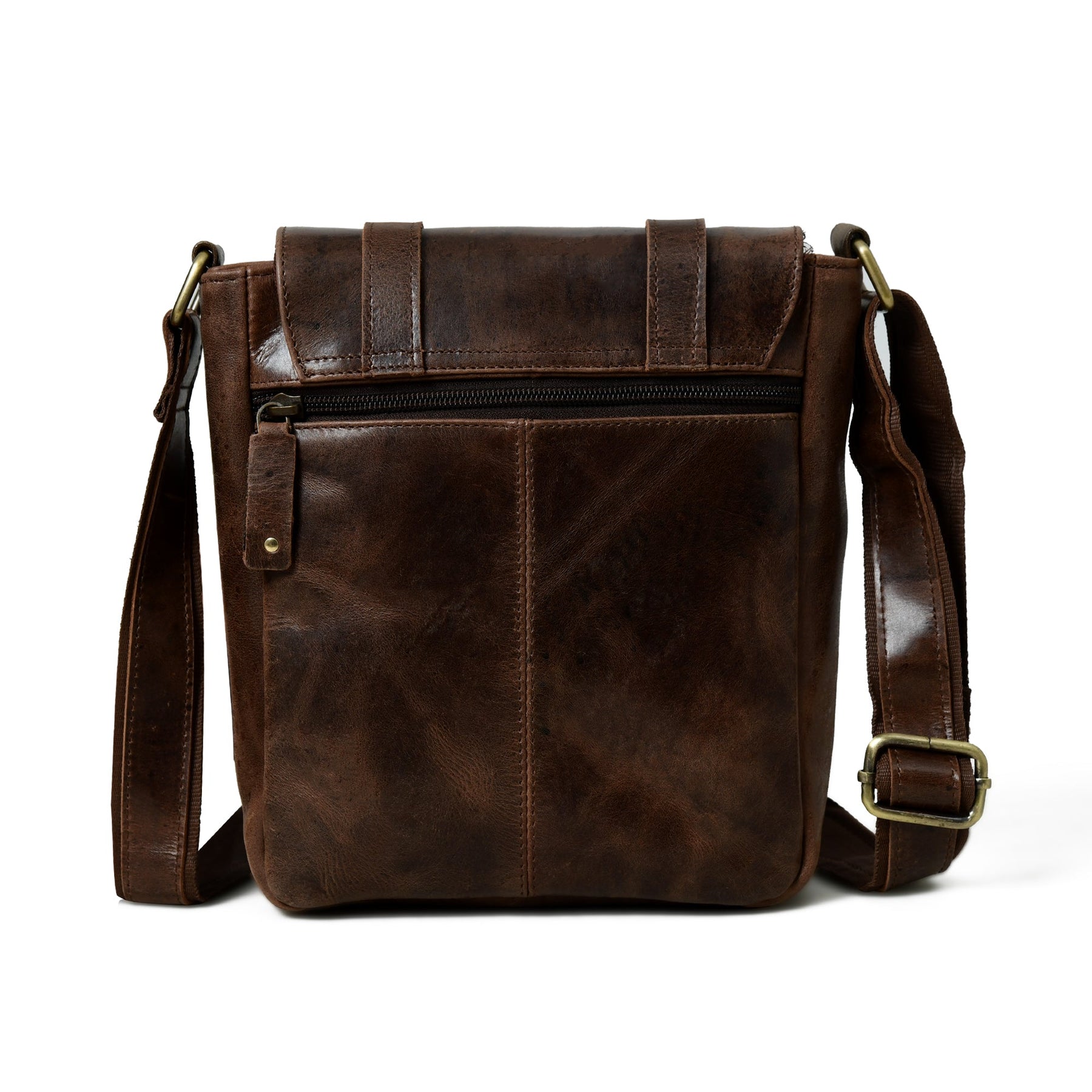 With a central compartment, a small front pocket, and a back pocket with zippers, it offers ample storage. The metal snap button and adjustable strap, allowing for crossbody wear, ensure both security and comfort. Designed for both men and women, this leather crossbody bag combines practicality and fashion seamlessly. Simplify your daily carry with this dependable and unisex leather messenger bag.
