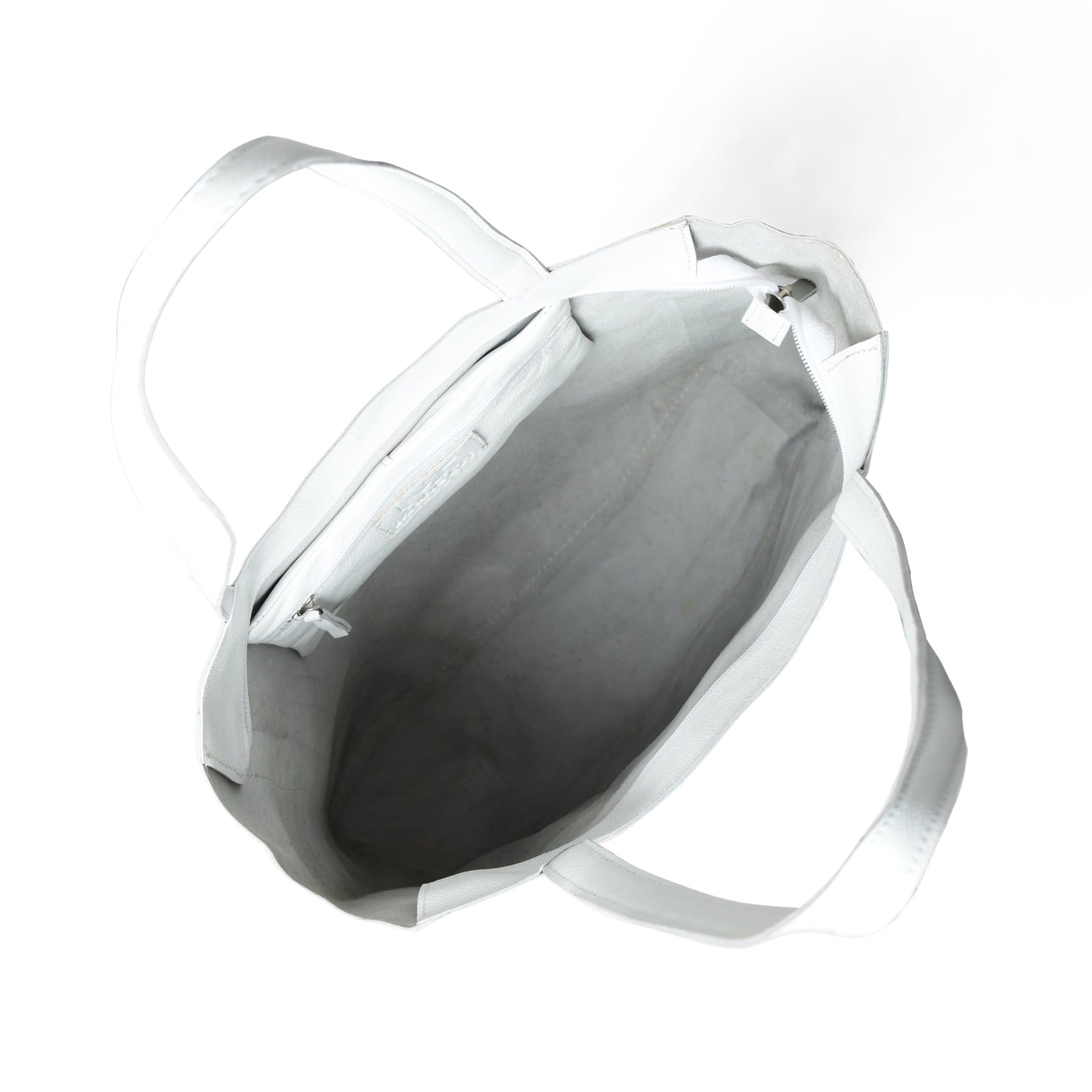 Step out in style and confidence with this iconic white leather shoulder tote bag, a classic embodiment of grace and functionality. Handcrafted by skilled artisans, it radiates timeless craftsmanship.