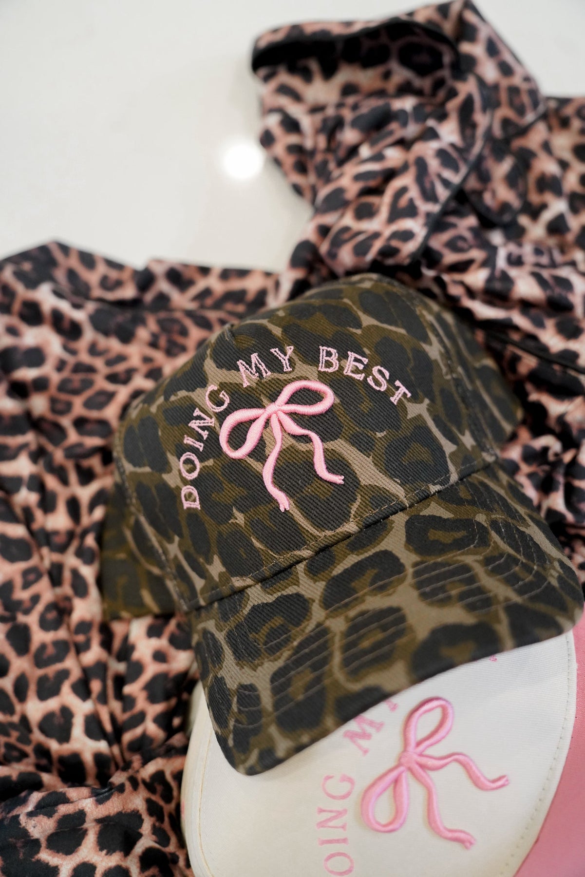 • Pink or Cheetah Vintage hat with pink embroidery + a bow!