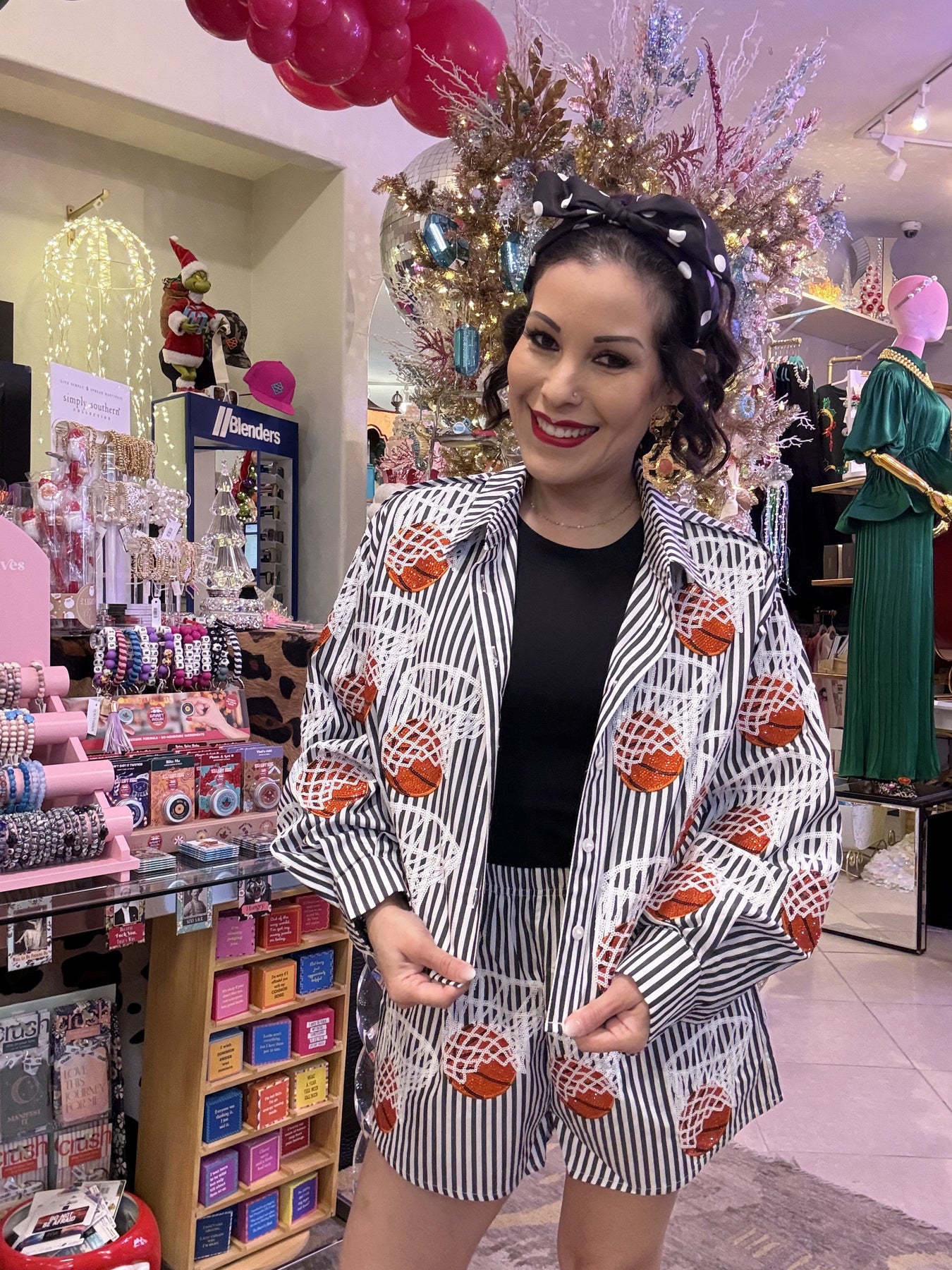 Get court-ready in these vibrant Queen of Sparkles basketball shorts featuring a striking black and white stripe design. Engineered for movement and comfort, these shorts let you play hard without sacrificing style. The bold striped pattern makes a confident statement while you're dominating the game. Whether you're hitting the court for serious competition or casual pickup games, these shorts deliver the perfect blend of athletic performance and eye-catching flair that'll have everyone noticing your moves. Model is wearing an XS