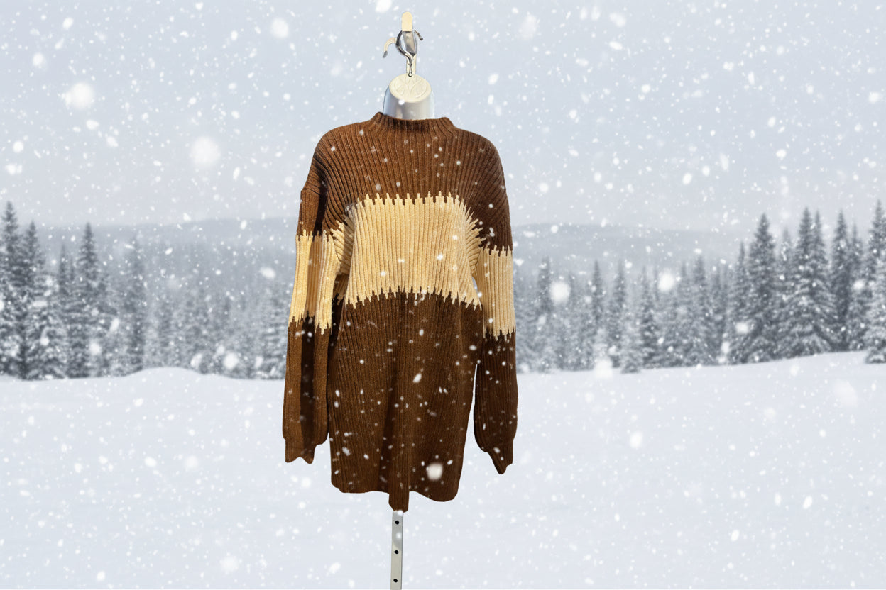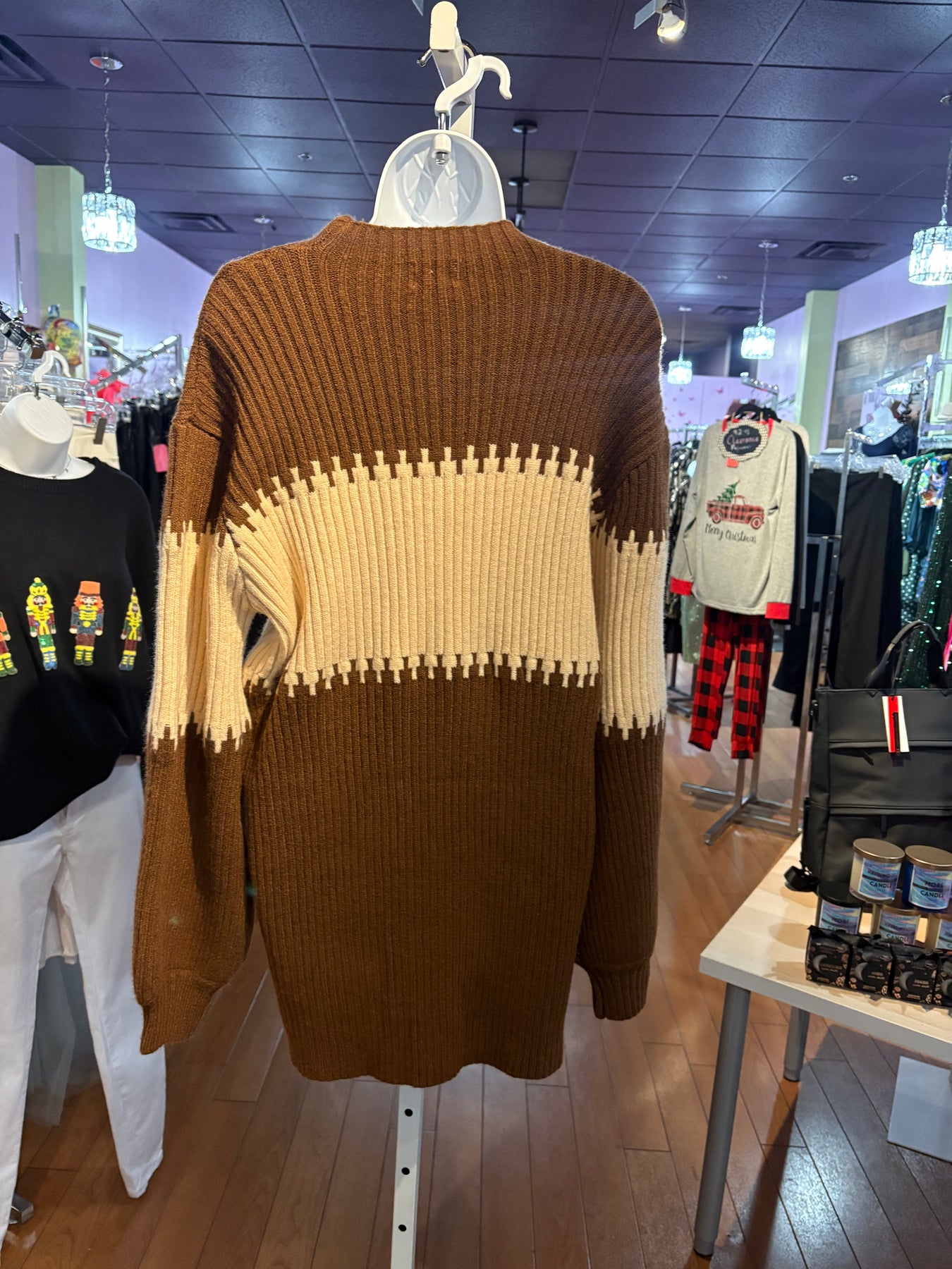 Brown Cream Sweater Dress Effortless sophistication meets everyday comfort in this color-blocked sweater dress. The rich brown and cream palette creates a timeless aesthetic that transitions seamlessly from office to weekend, while the relaxed knit construction provides all-day wearability. Designed for the discerning traveler and style-conscious professional, this piece layers beautifully over turtlenecks or stands alone as a statement. The neutral tones pair with virtually any accessory, making it an essential addition to a curated wardrobe.