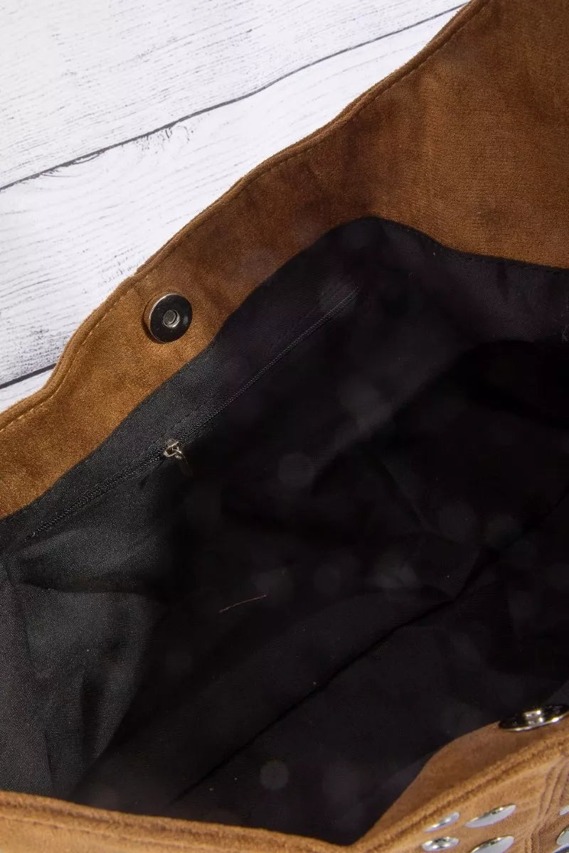 Make a bold fashion statement with the Multi Rivet Studded Shoulder Bag, featuring a stylish and edgy multi-rivet studded design. Crafted from durable materials, this shoulder bag combines longevity with a fashionable aesthetic. The spacious interior offers practical storage for your essentials, making it both functional and chic. Perfect for those who love to express their unique style, this shoulder bag adds an eye-catching element to any outfit. Elevate your look with the daring and on-trend Multi Rivet Studded Shoulder Bag.