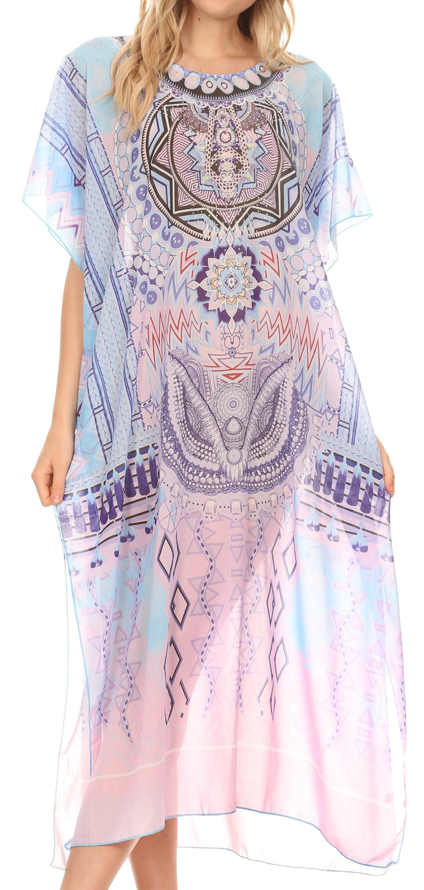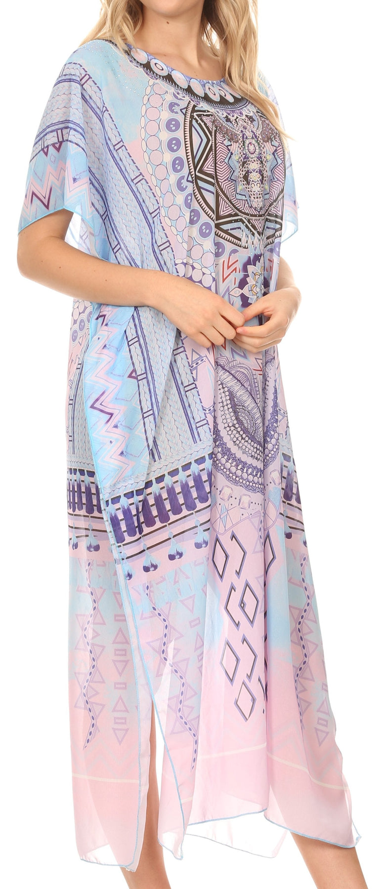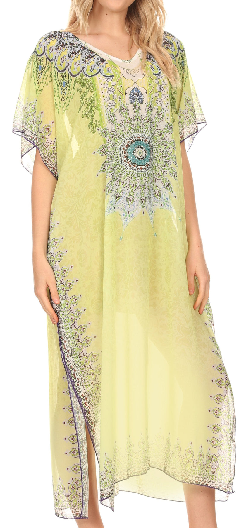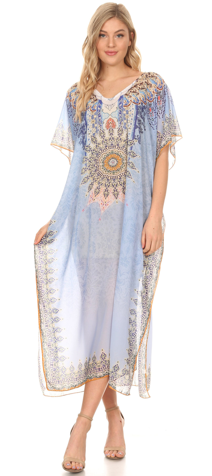 MKY Astryd Women's Flowy Maxi Long Caftan Dress Cover Up with Rhinestone