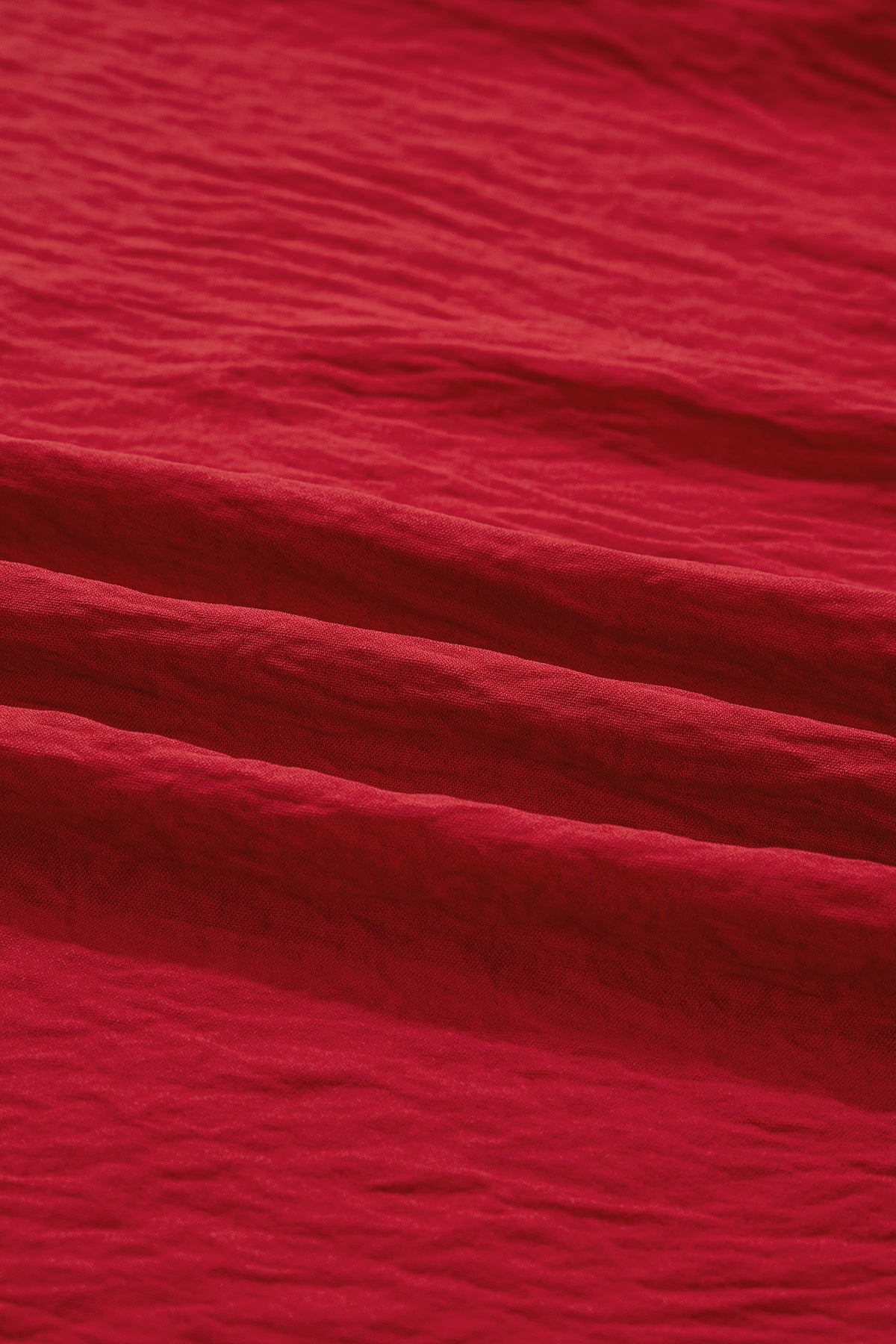 Racing Red Contrast Embroidered Detail Cinched Waist Tiered Long Sleeve Maxi Dress