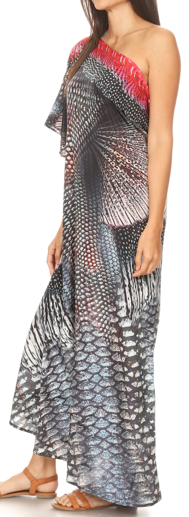 Sakkas Dora Women's One Shoulder Short Sleeve Casual Elegant Maxi Dress with Print