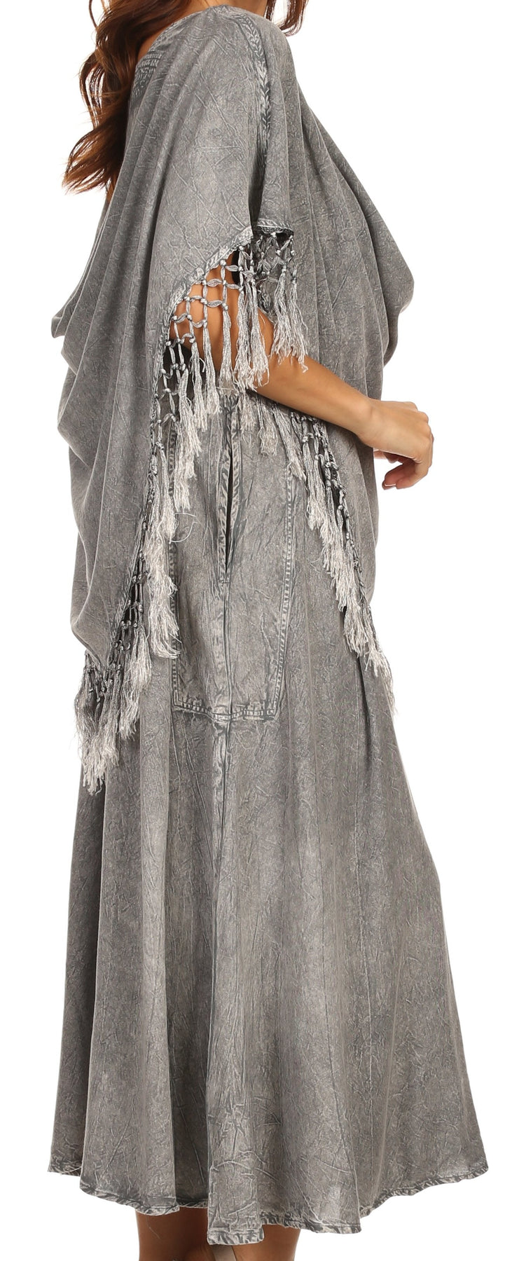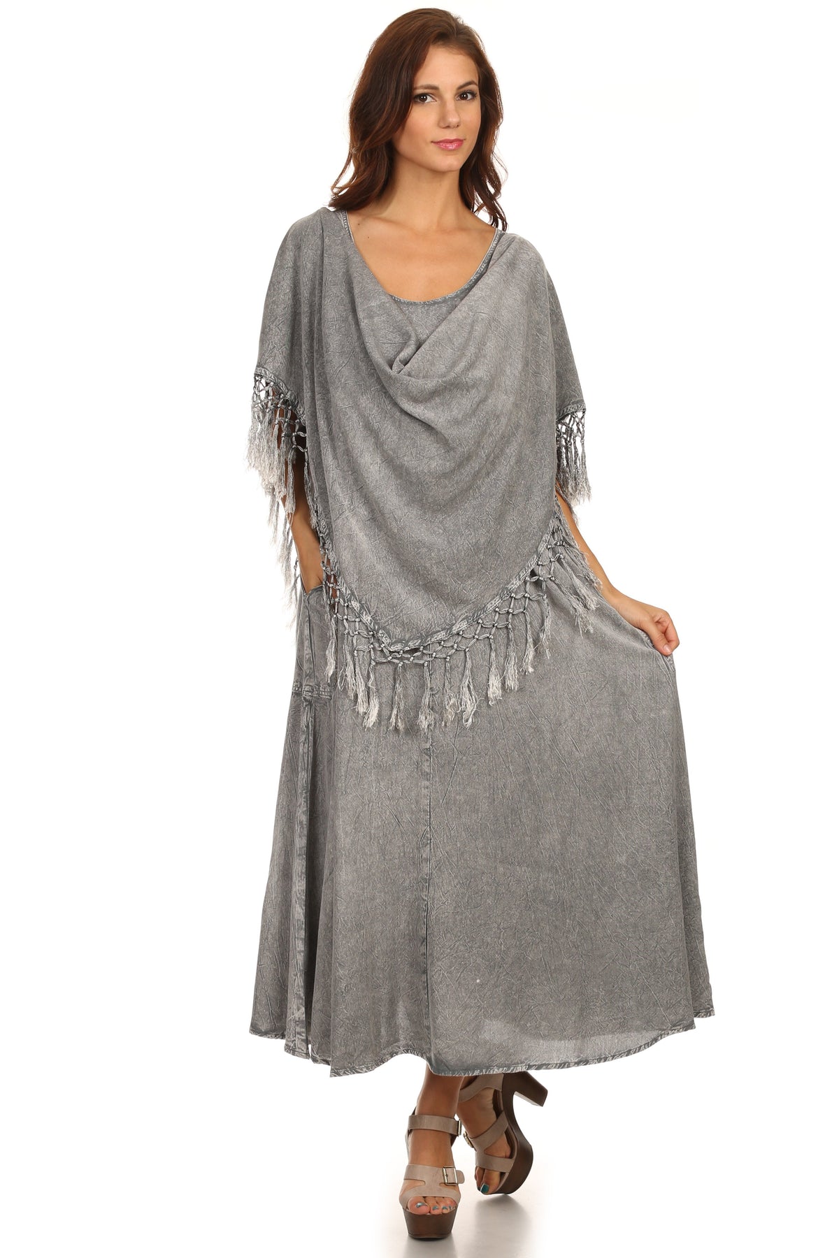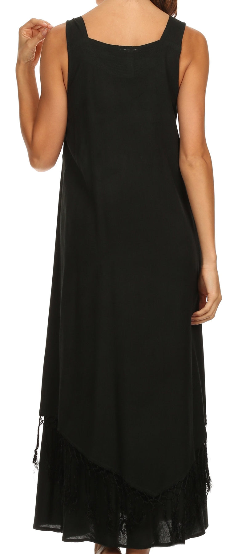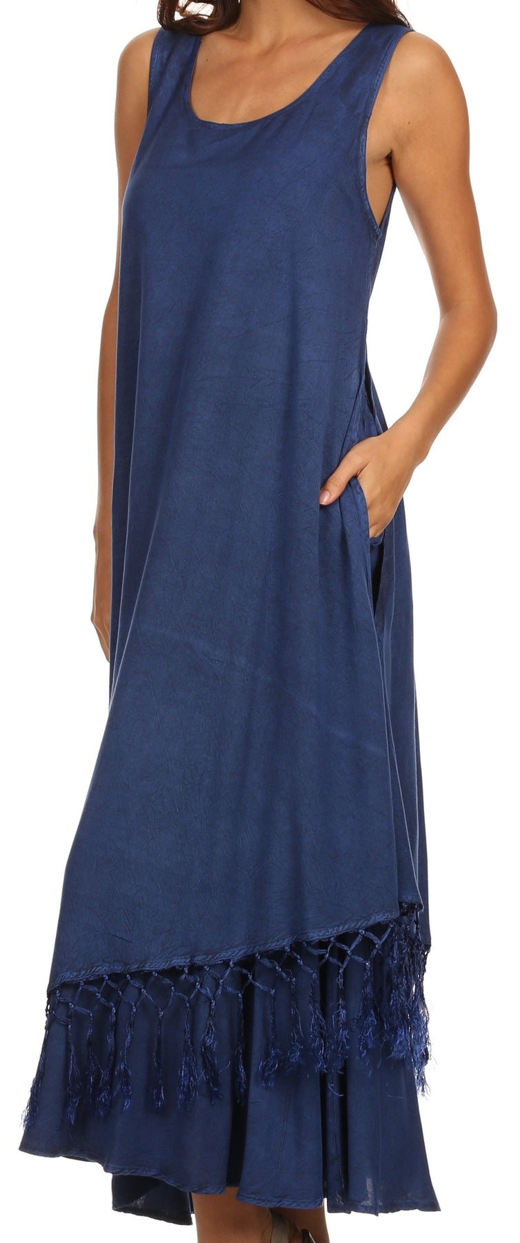 Sakkas Emma Relaxed Fit Scoop Neck Double Layered with Fringe Tank Dress