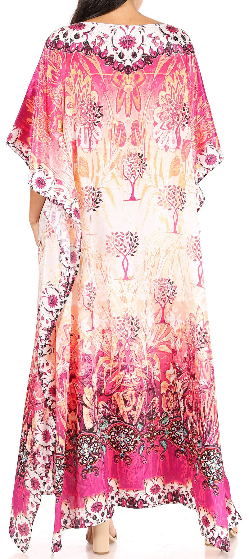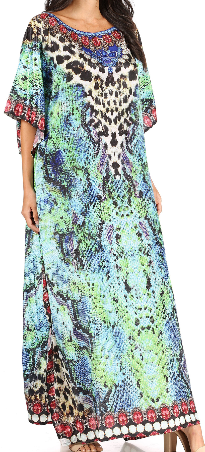 Sakkas Jabari Women's Maxi Short Sleeve Long Beach Kaftan Dress Boho Loose Gown