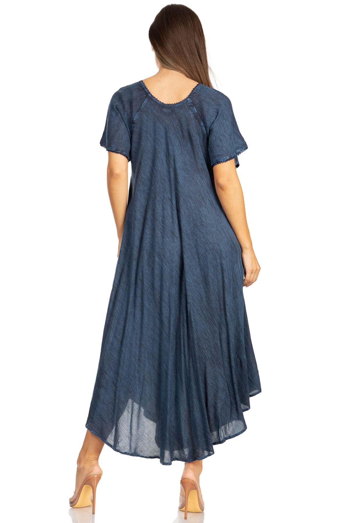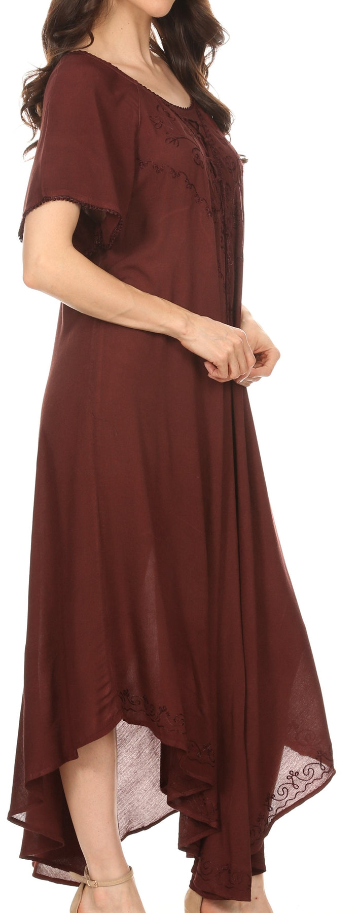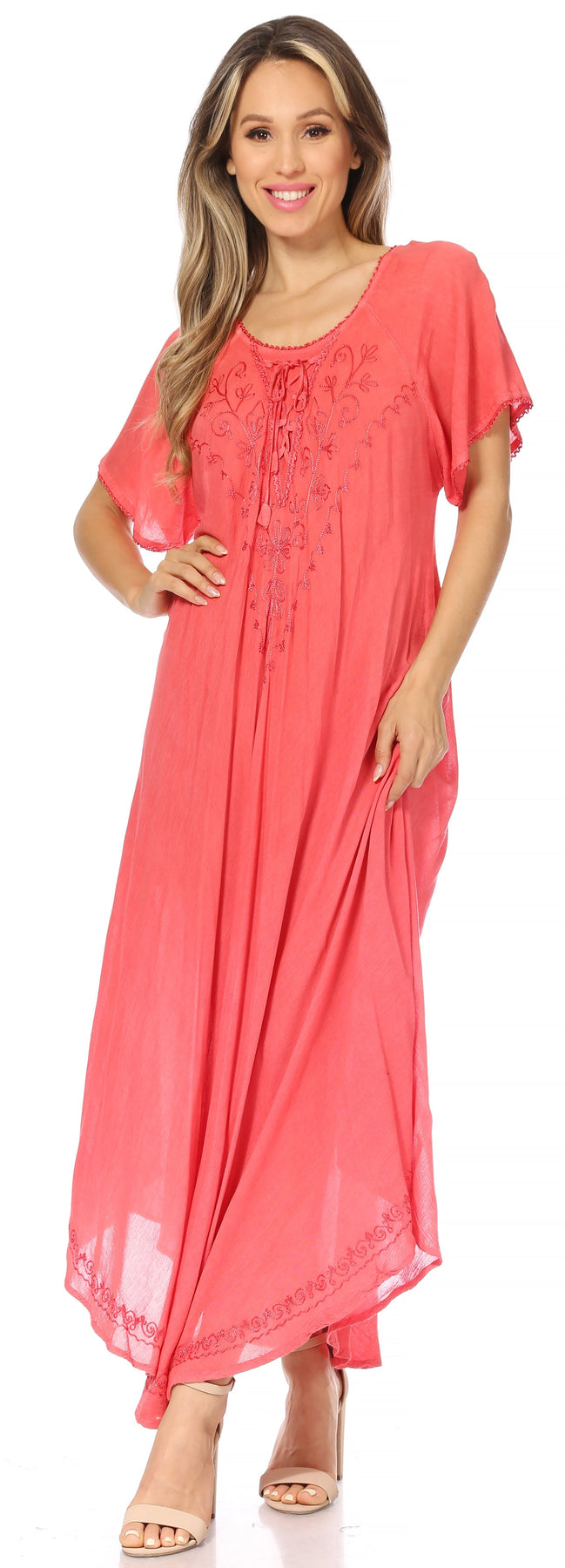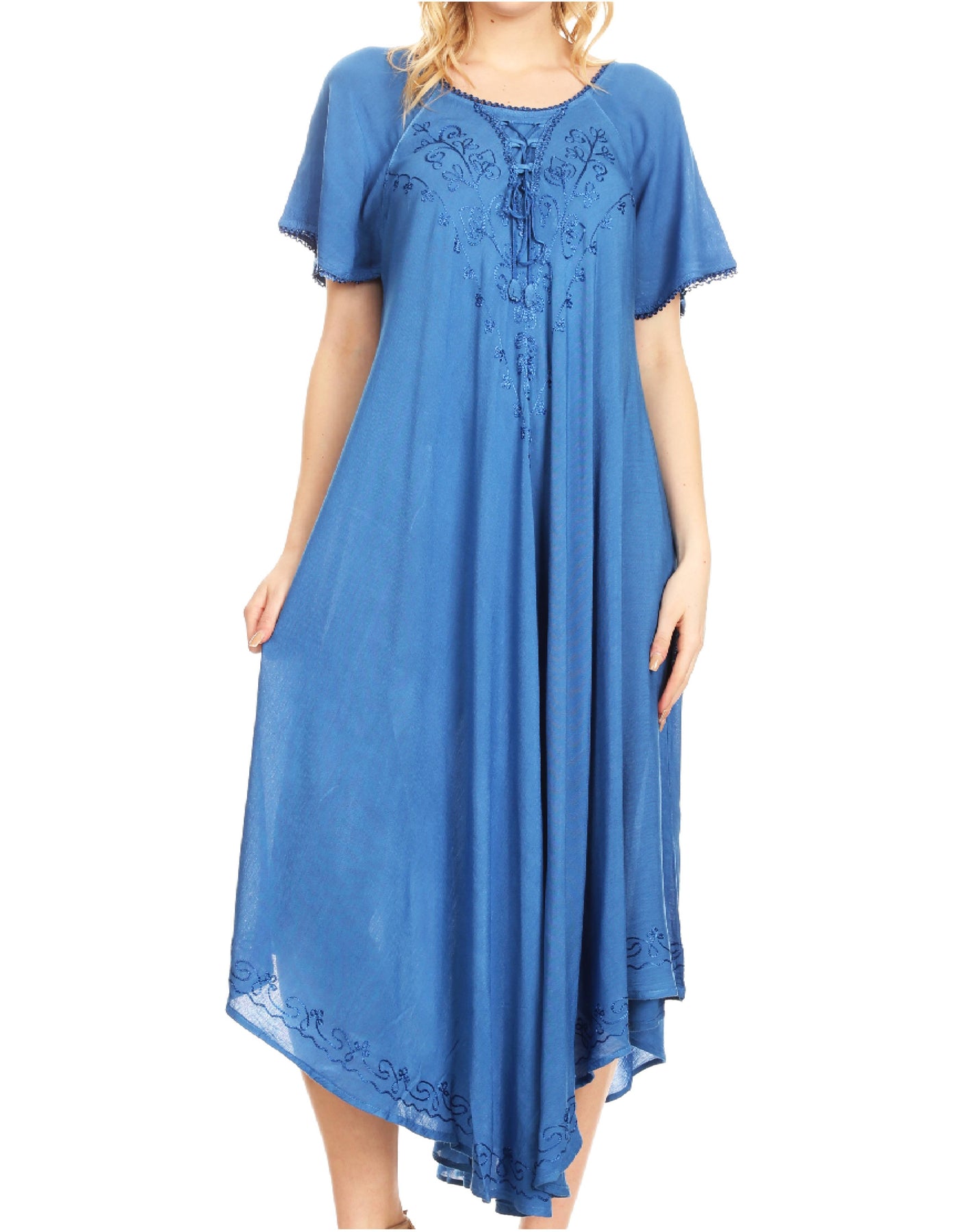 Sakkas Lilia Embroidered Lace Up Bodice Relaxed Fit  Maxi Sun Dress