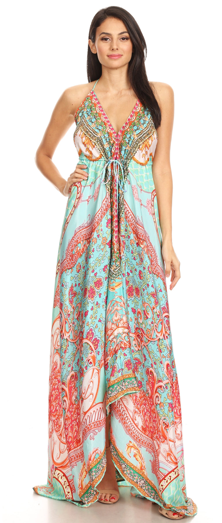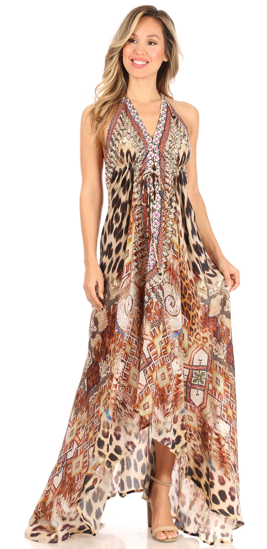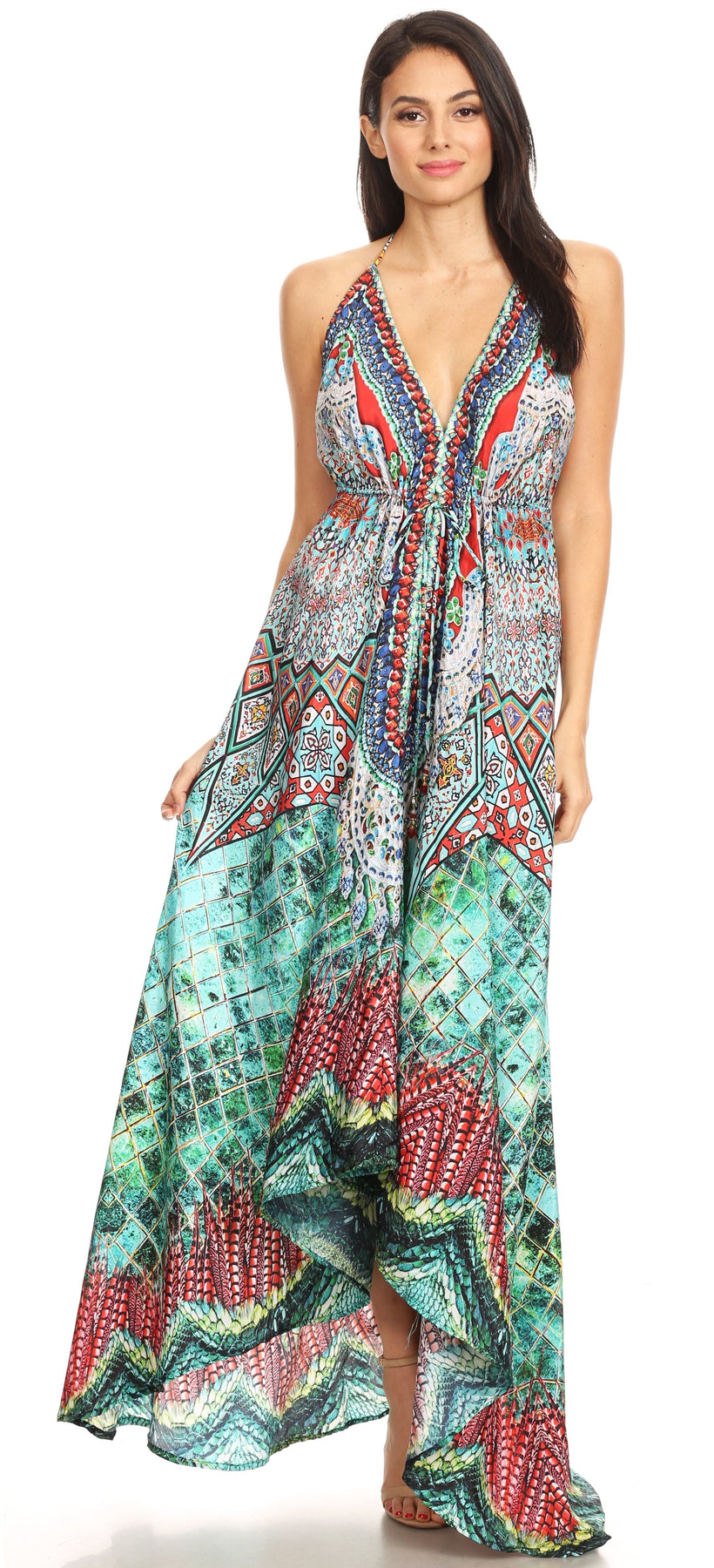 Sakkas Lizi Womens Maxi High-low Halter Handkerchief Long Dress Beach Party