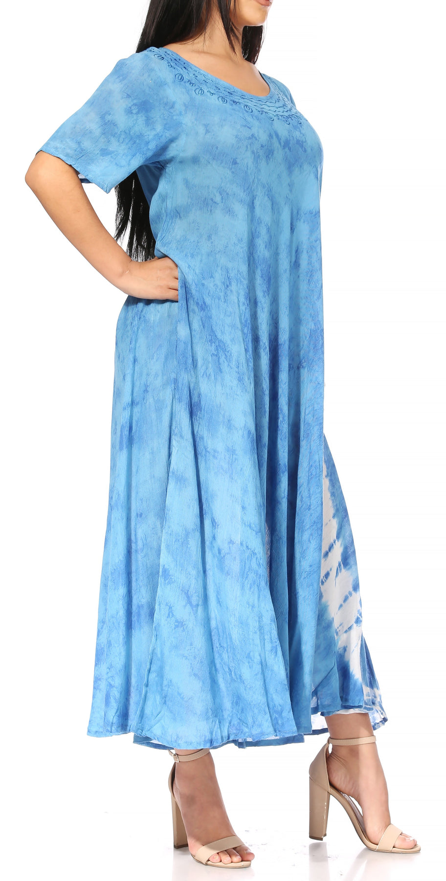Sakkas Marcela Women's Casual Summer Maxi Short Sleeve Boho Dress Kaftan Sundress
