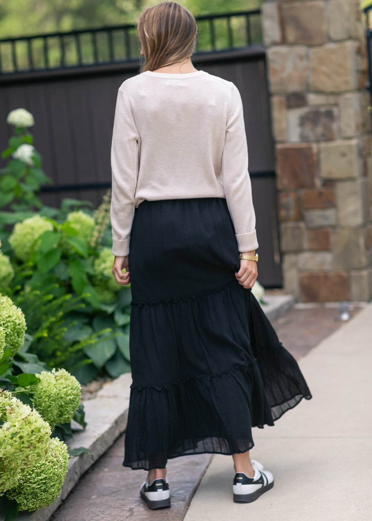 The Serena Gauze Maxi Skirt is an elevated and modest basic you will love! This high-quality maxi length skirt features an eyelet lace skirt that is tiered and adorned with small ruffles. It is lined and crafted from 100% cotton fabric, and is fully lined. The skirt is sure to be an enduring piece in any wardrobe!