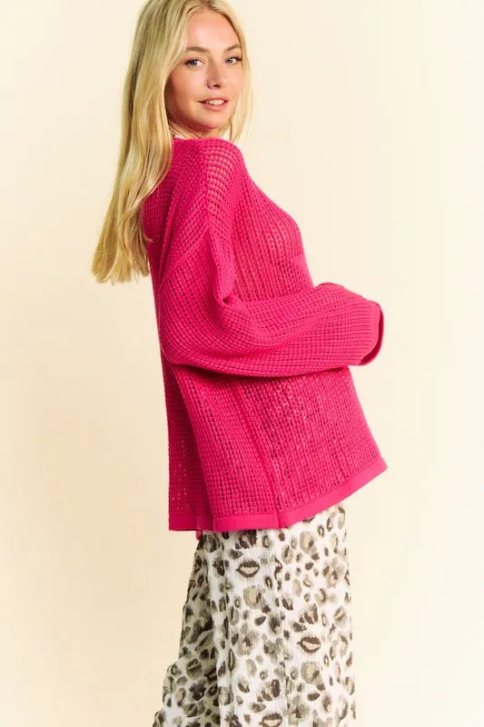 The Star Front Crochet Drop Shoulder Knit Top is a trendy and stylish piece that combines crochet detailing and a drop shoulder silhouette for a fashionable look. The star-shaped design on the front adds a unique and eye-catching element to the knit top, giving it a playful and fun vibe. The drop shoulder style creates a relaxed and laid-back fit, making this top comfortable and easy to wear for various occasions. Perfect for adding a touch of bohemian flair to your outfit, this knit top is a versatile and chic addition to your wardrobe.