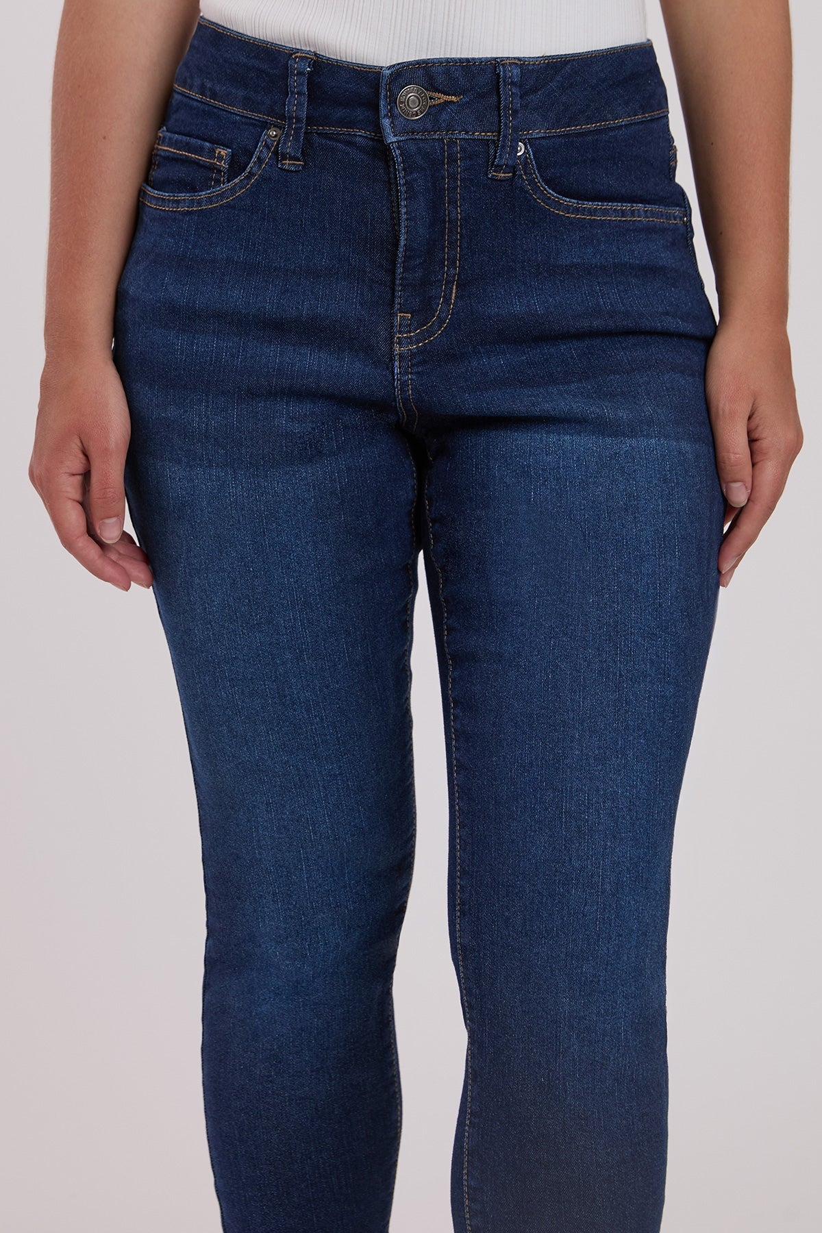 Denim doesn't get better than with our Missy Petite Sustainable High Rise Skinny Jeans. Crafted with midweight stretchy denim, these mid-waisted jeans feature a flattering silhouette that is fitted hip to hem. Constructed with our contouring design to perfectly sculpt, hold, and lift in all the right places, and built-in tummy control panels at the waistline. Detailed with a classic five-pocket construction and a zip fly with single button closure. Style with a loose-fit blouse and heels for a dressier feel, or pair with your favorite tee and sneakers for a casual look.