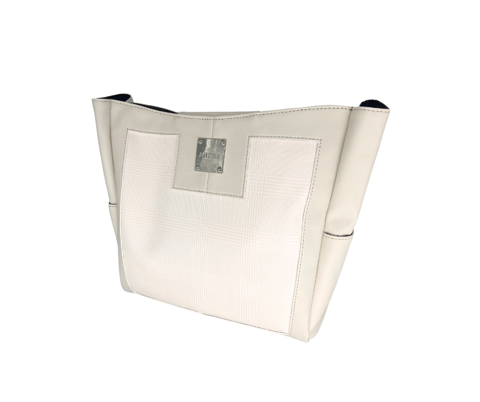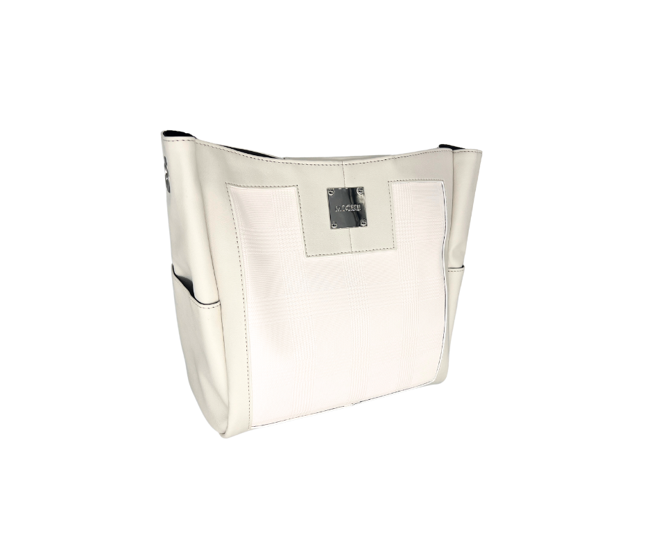 Nothing says fresh like Bailey Demi! She is a breath of fresh air and a clean canvas for summer. With a crisp white plaid inlay, her smooth pristine off-white accents will be the fresh start you have been waiting for. She has a silver hardware and deep side pockets.