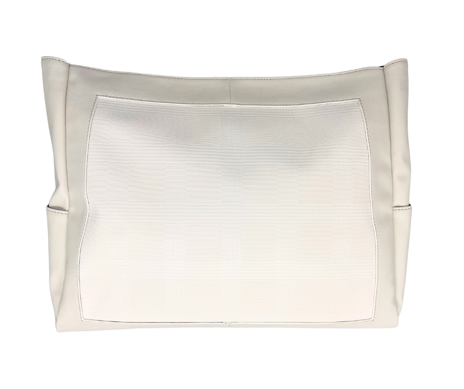 Pair with White Braided Handles and silver carabiners. Additional options for handles are Cream Fashion Handles, Cream Straps with Silver Chain Handles, White Rolled Handles, or for a crossbody look or longer handle, use the White Should Strap.